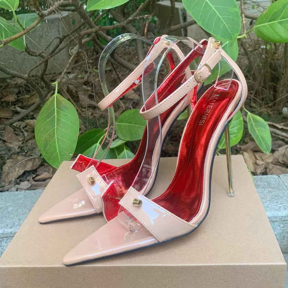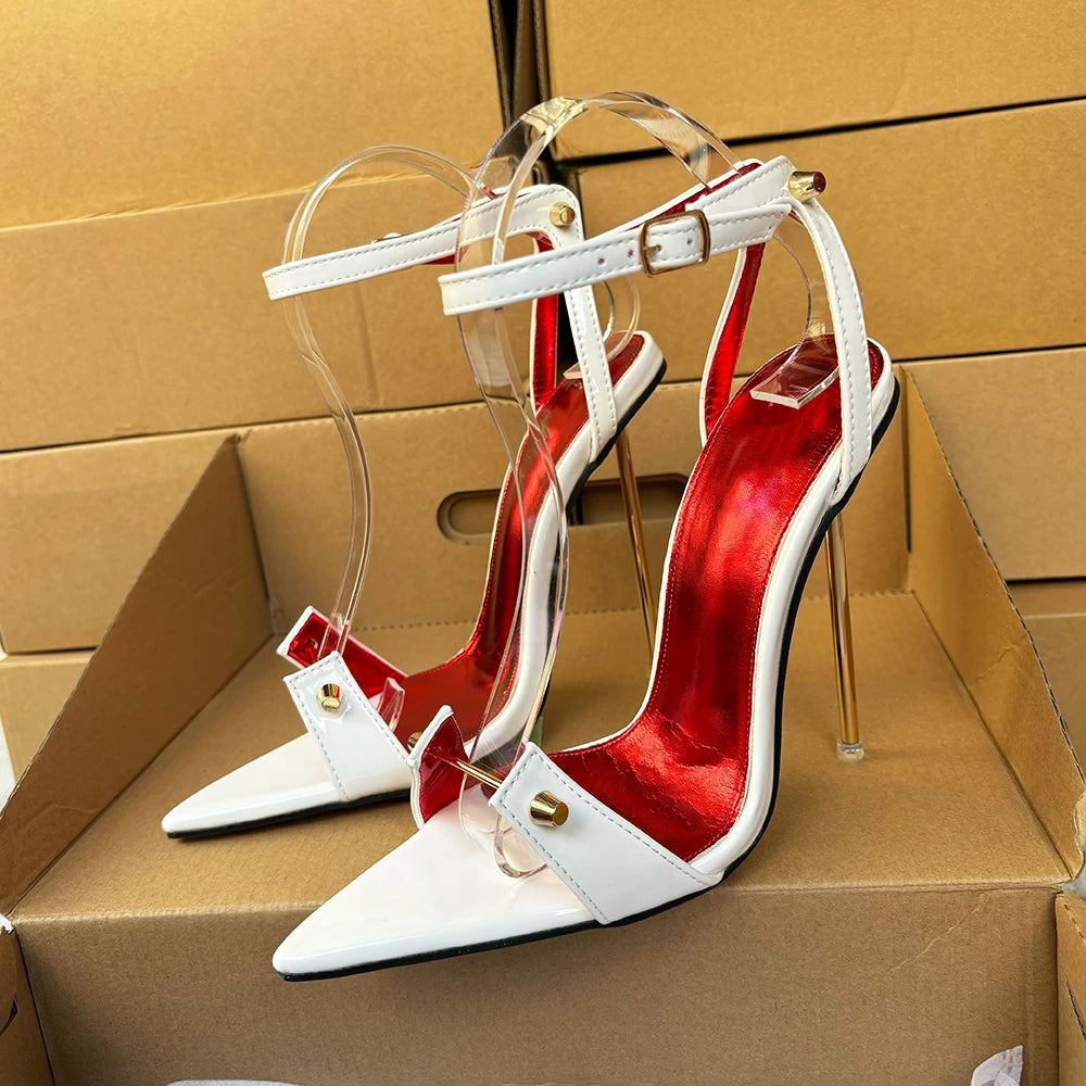 Sandalias de tacón alto de metal de 12 cm con tacón de aguja sexy para mujer