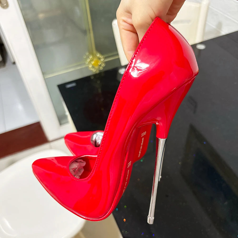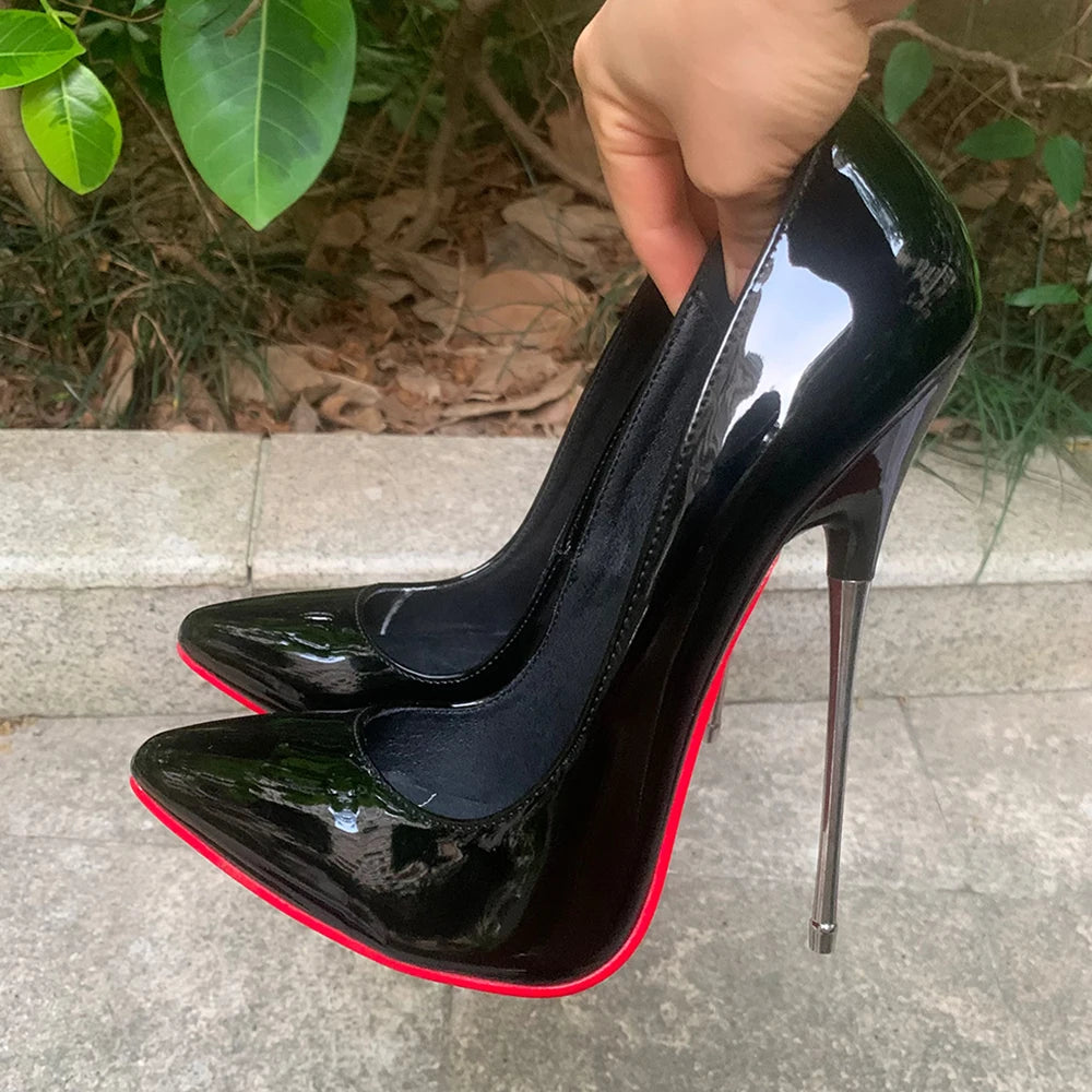 Tacones altos de metal extremo de 16 cm, tacones de aguja sexis para mujer, color negro, morado, blanco y rojo, con interior FetishColour, personalizable