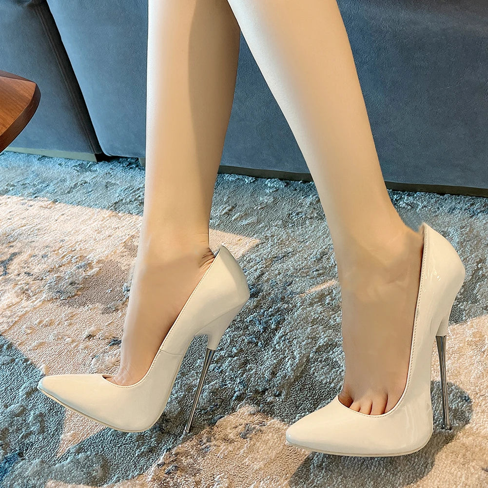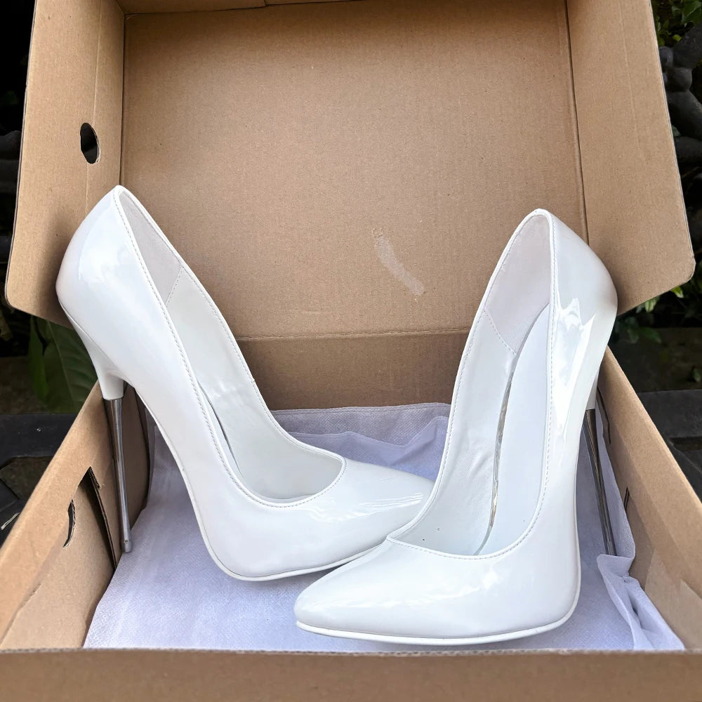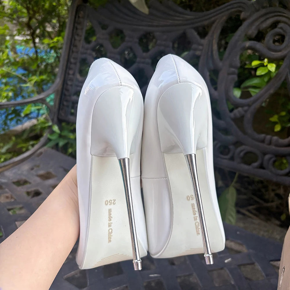 Tacones altos de 16 cm, totalmente blancos, para pole dance, escenario, stilettos