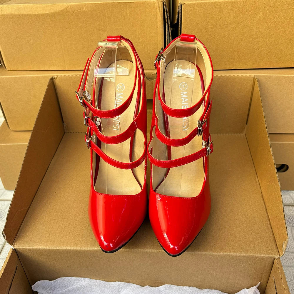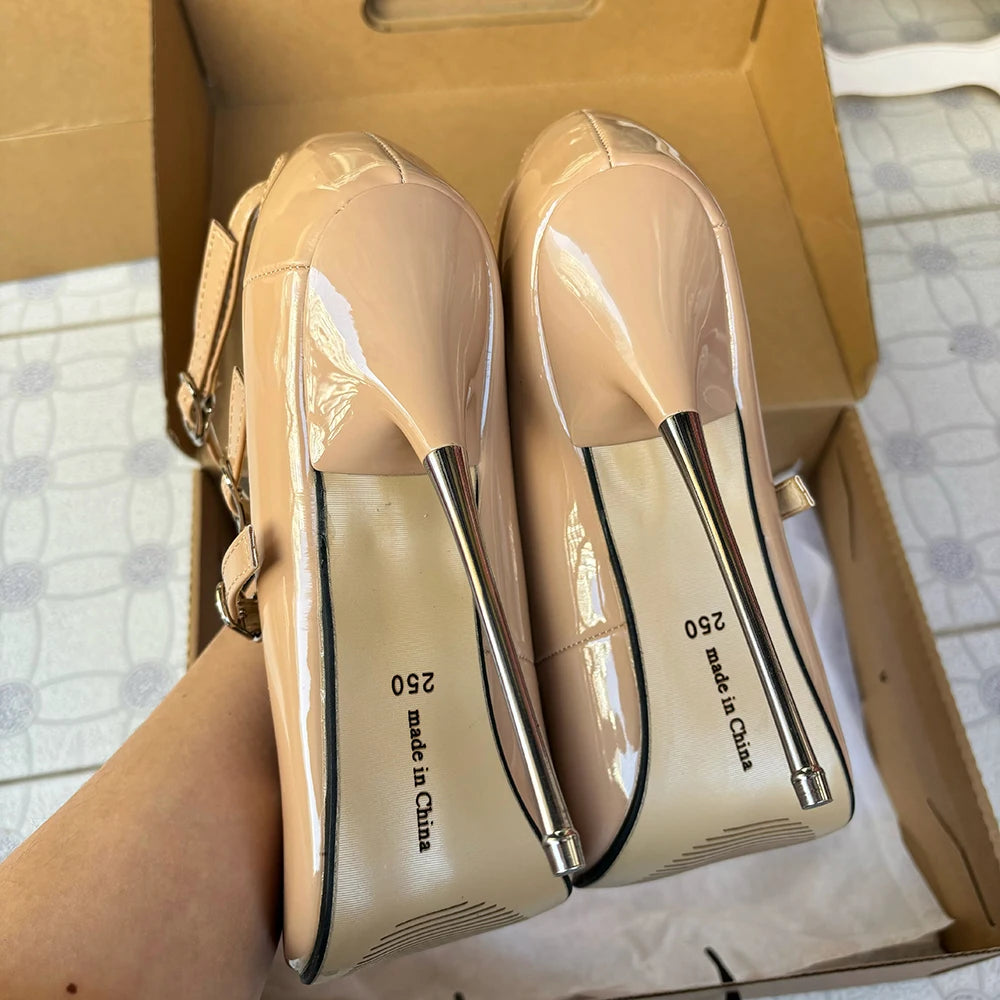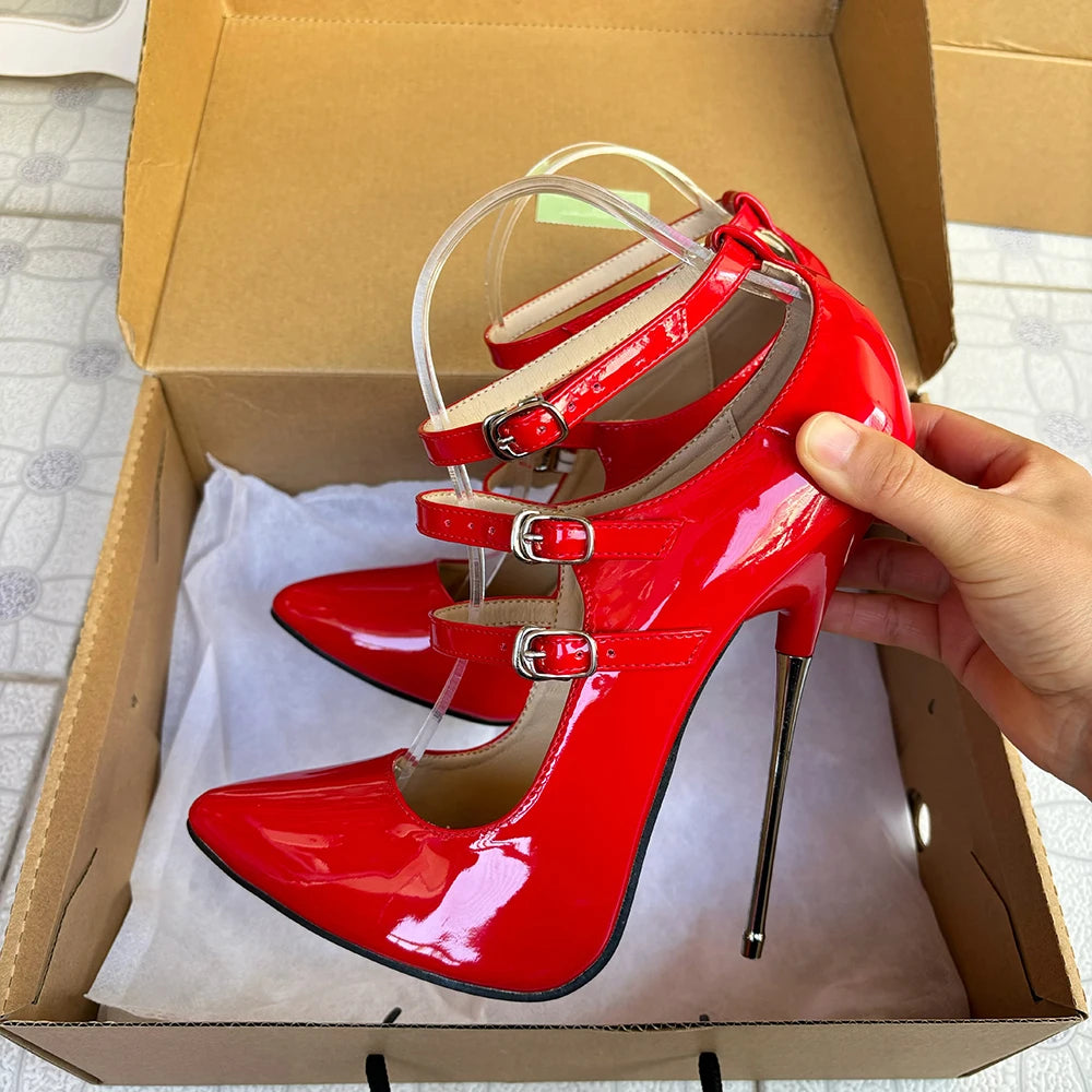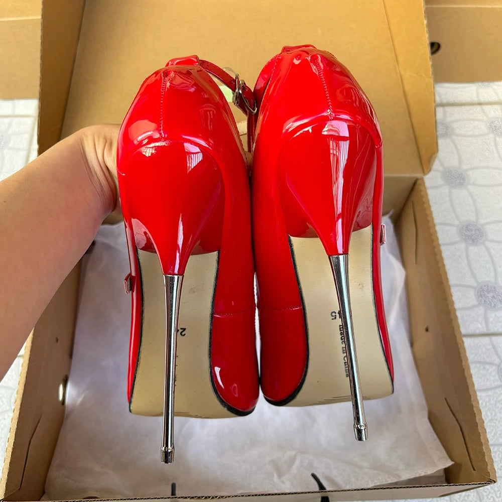 Tacones altos unisex de 16 cm con tiras negras en el tobillo, sexys y fetichistas.