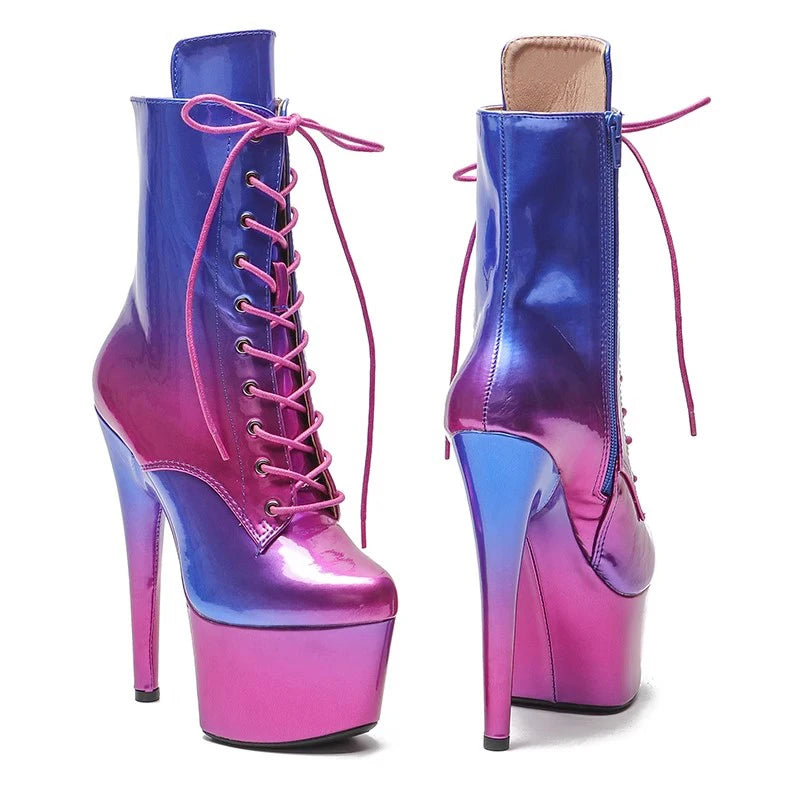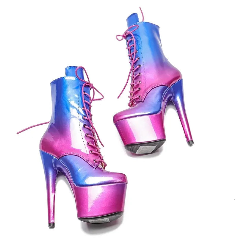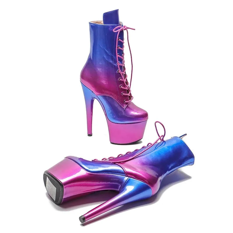 Botas modernas de tacón alto con plataforma para mujer, zapatos de baile en barra, de PU, de 17 cm/7 pulgadas, para fiesta