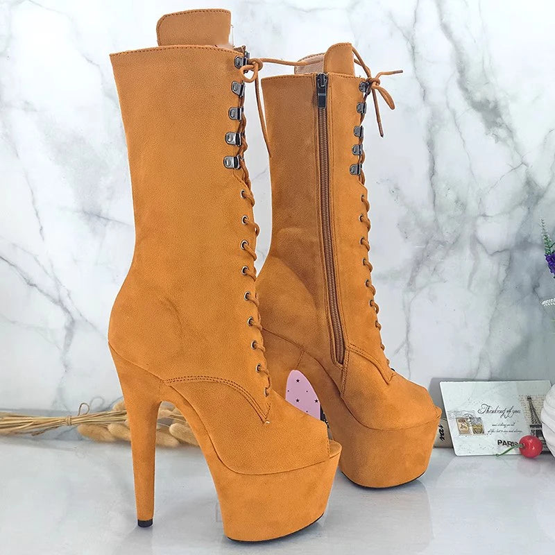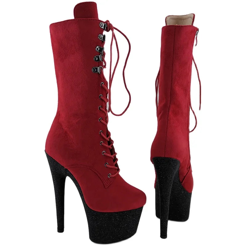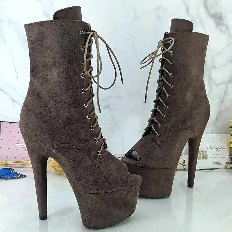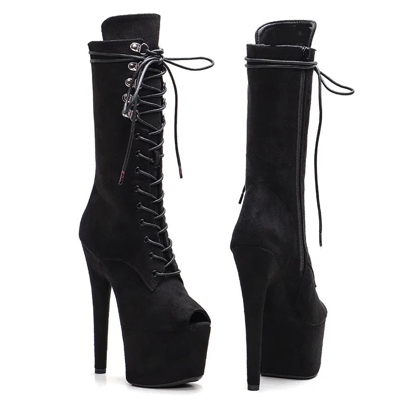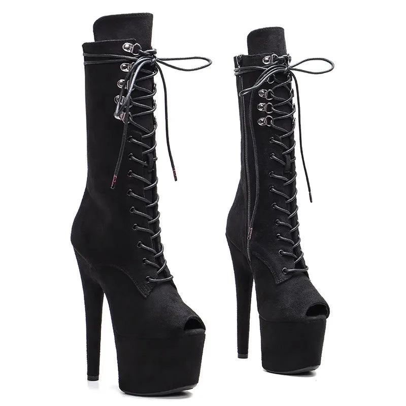 Botas modernas de tacón alto con plataforma para mujer, de 17 cm/7 pulgadas, para baile en barra