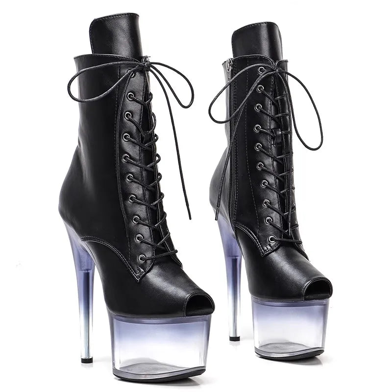 Botas modernas de tacón alto con plataforma para mujer, de 17 cm/7 pulgadas, para baile en barra