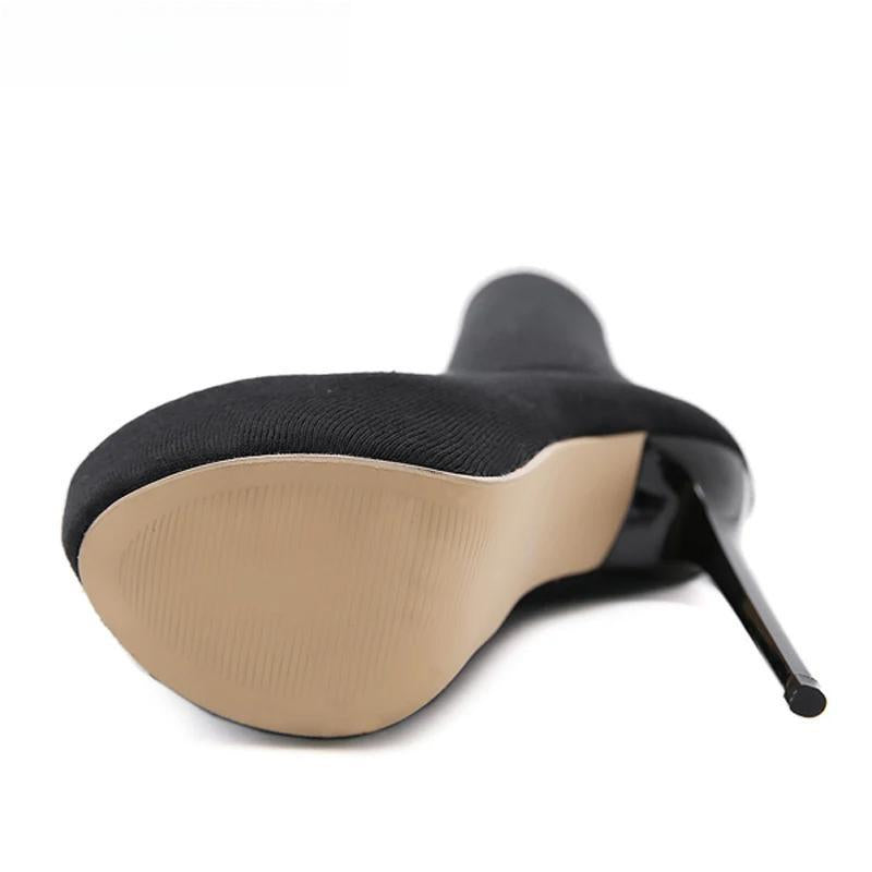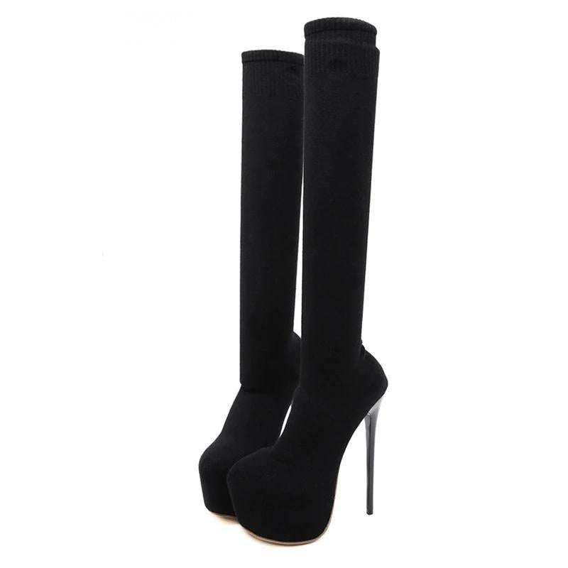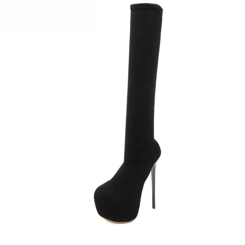 Botas de invierno por encima de la rodilla para mujer, con plataforma de 17 cm, de punto, negras, con punta redonda y calcetines largos hasta el muslo.