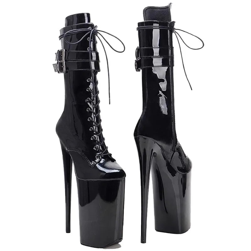 Botas sexis de tacón alto con parte superior de PU patentado de 23 cm/9 pulgadas