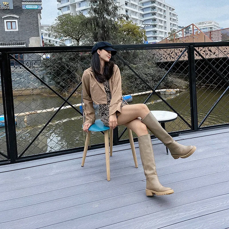 Botas negras hasta la rodilla de tacón alto para otoño e invierno, cálidas, para mujer