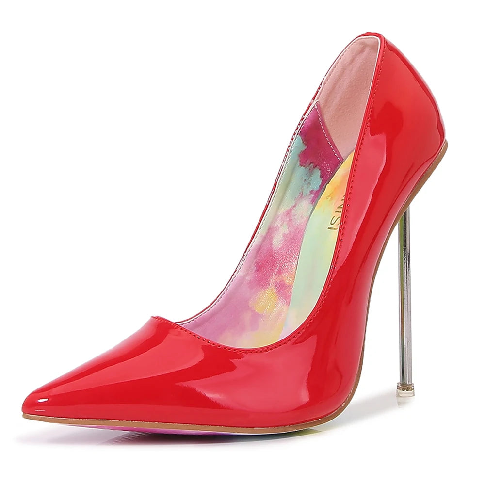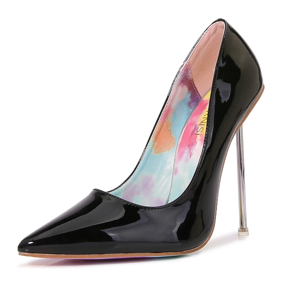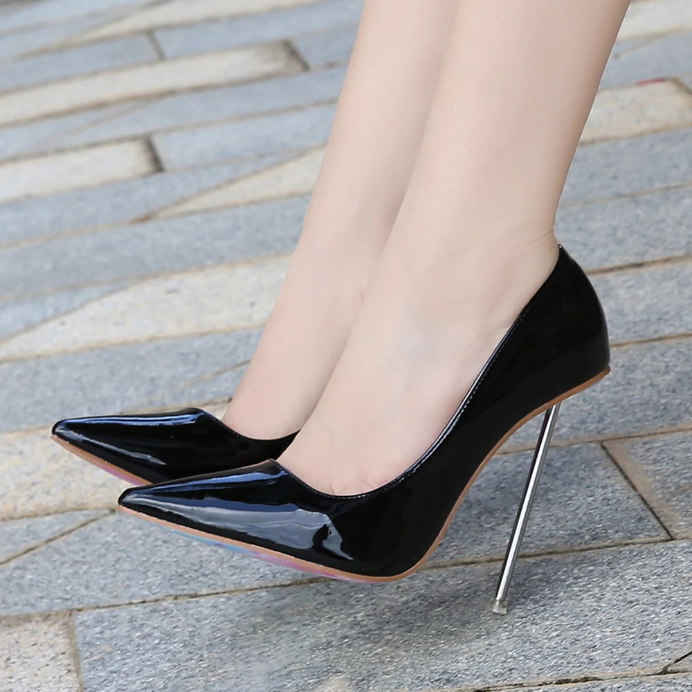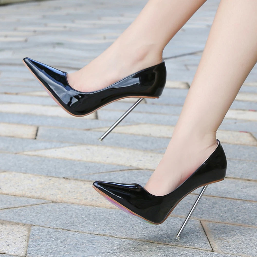 Zapatos de tacón alto de aguja de metal de 12 cm con diseño elegante
