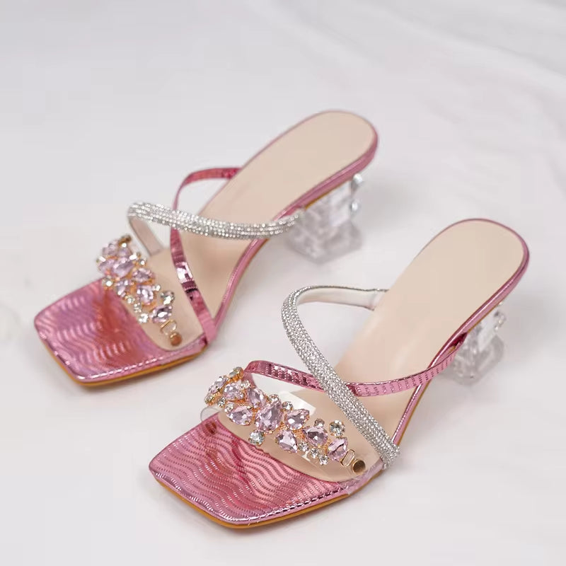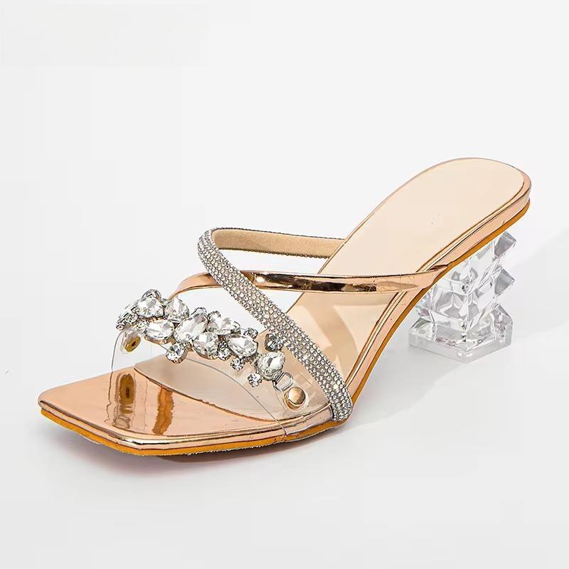 CRYSTAL Sandalias de tacón alto transparentes y extrañas para mujer, sandalias con punta cuadrada, chanclas para mujer