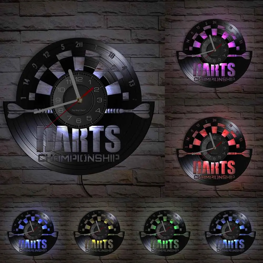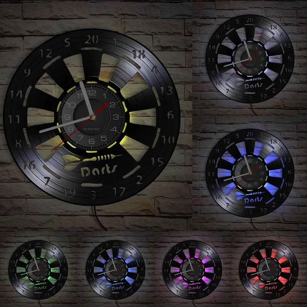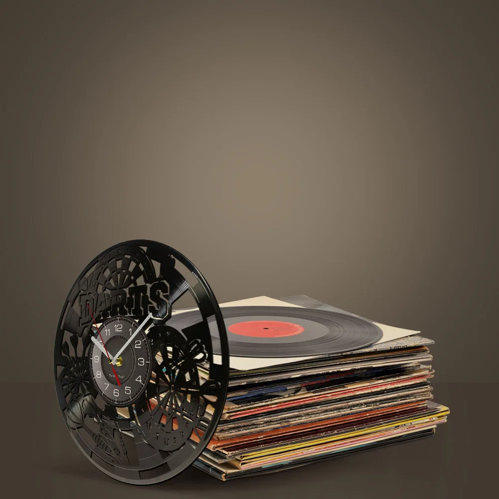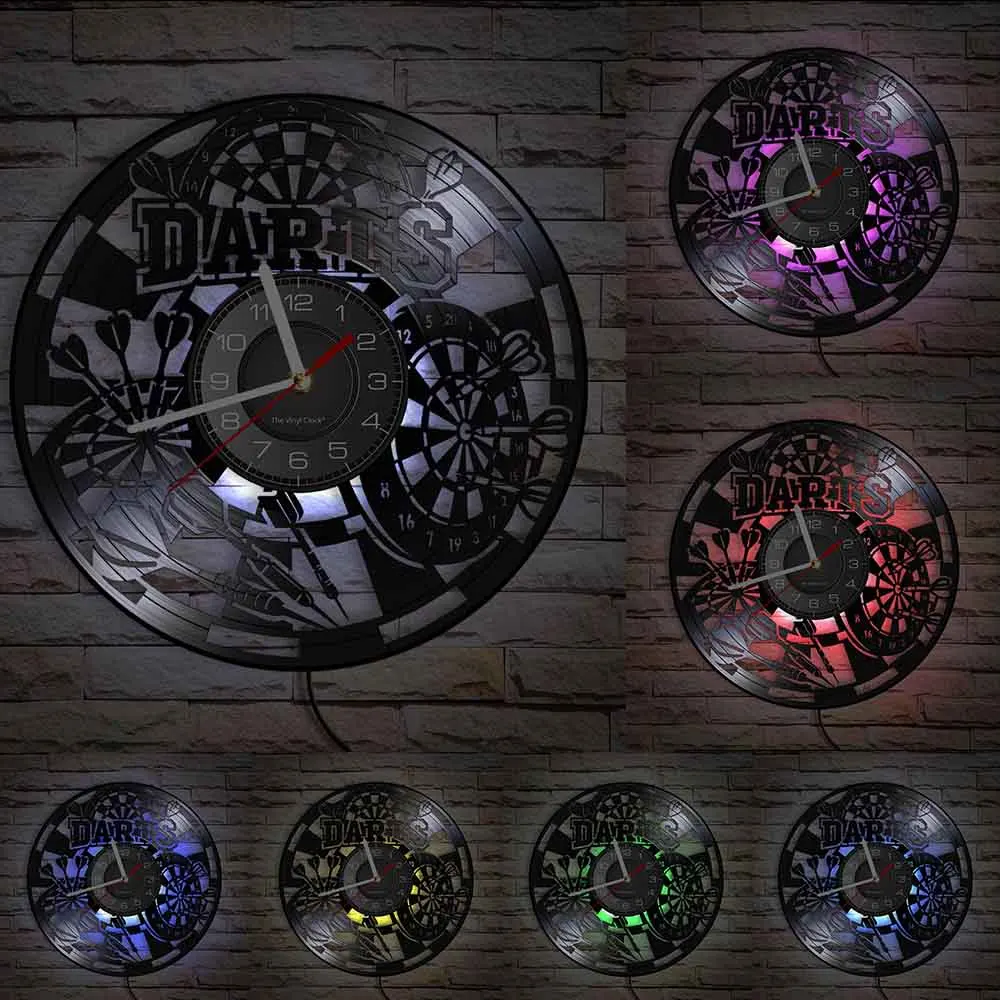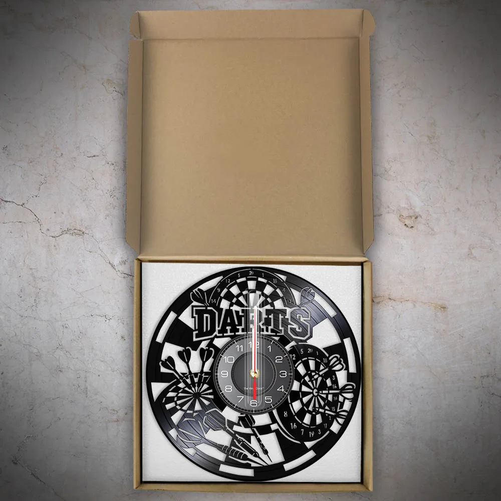 Reloj de pared de vinilo retro con diseño de dardos para pub, cueva de hombre, sala de juegos, decoración, reloj retro, tablero de dardos, bar, club nocturno, manualidades
