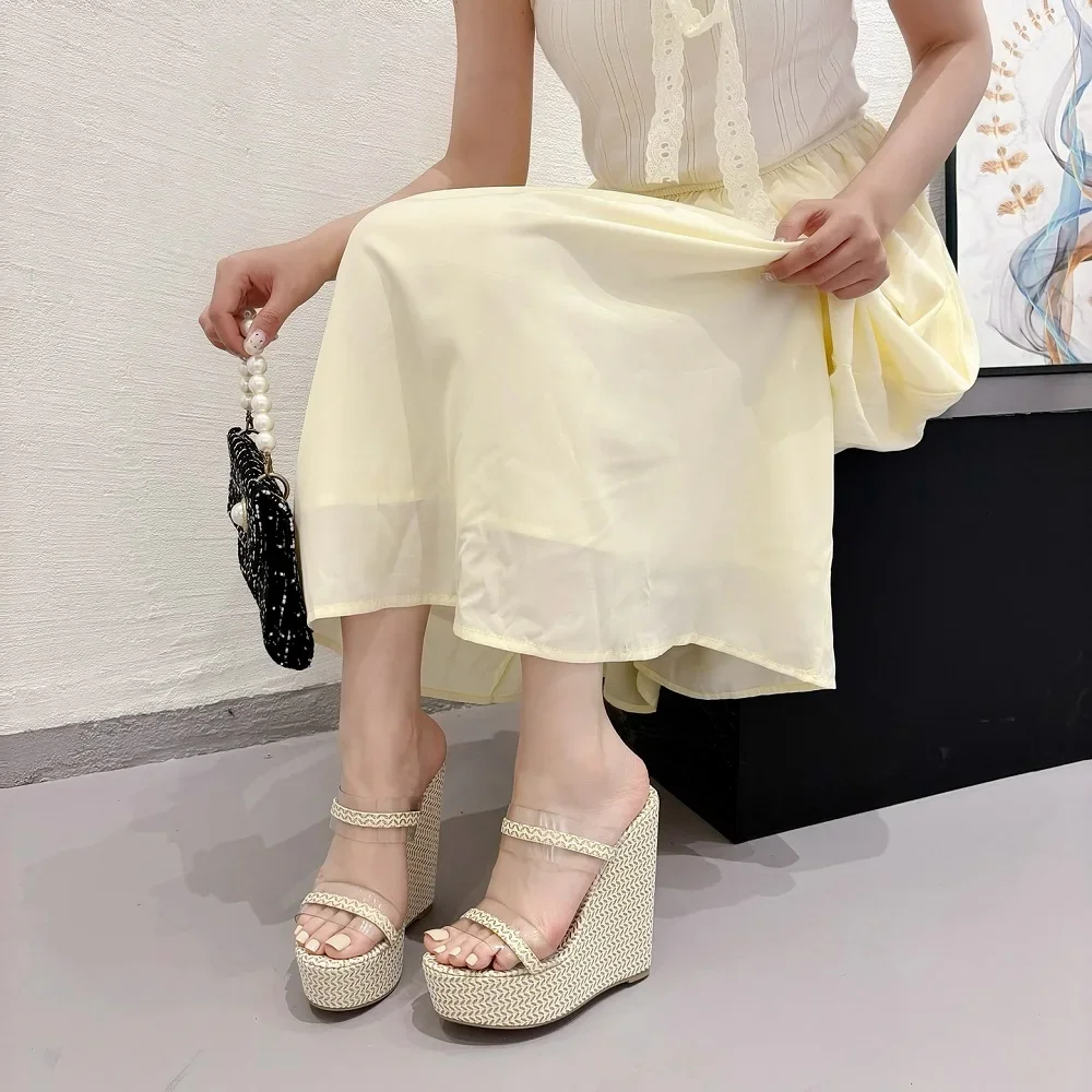 Zapatillas de plataforma con lentejuelas y tacón alto para mujer, de PVC transparente, para fiesta de verano