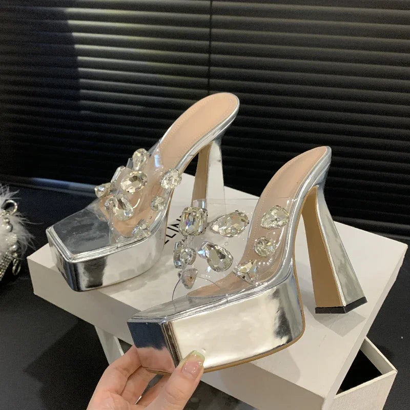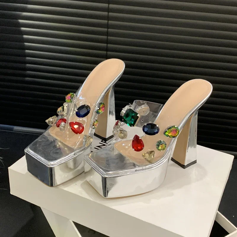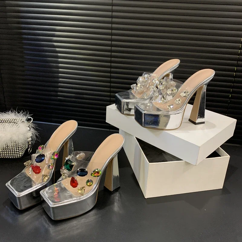 Zapatillas de verano Eilyken con plataforma y tacón alto de PVC transparente para mujer, zapatos sexis para banquetes y fiestas.