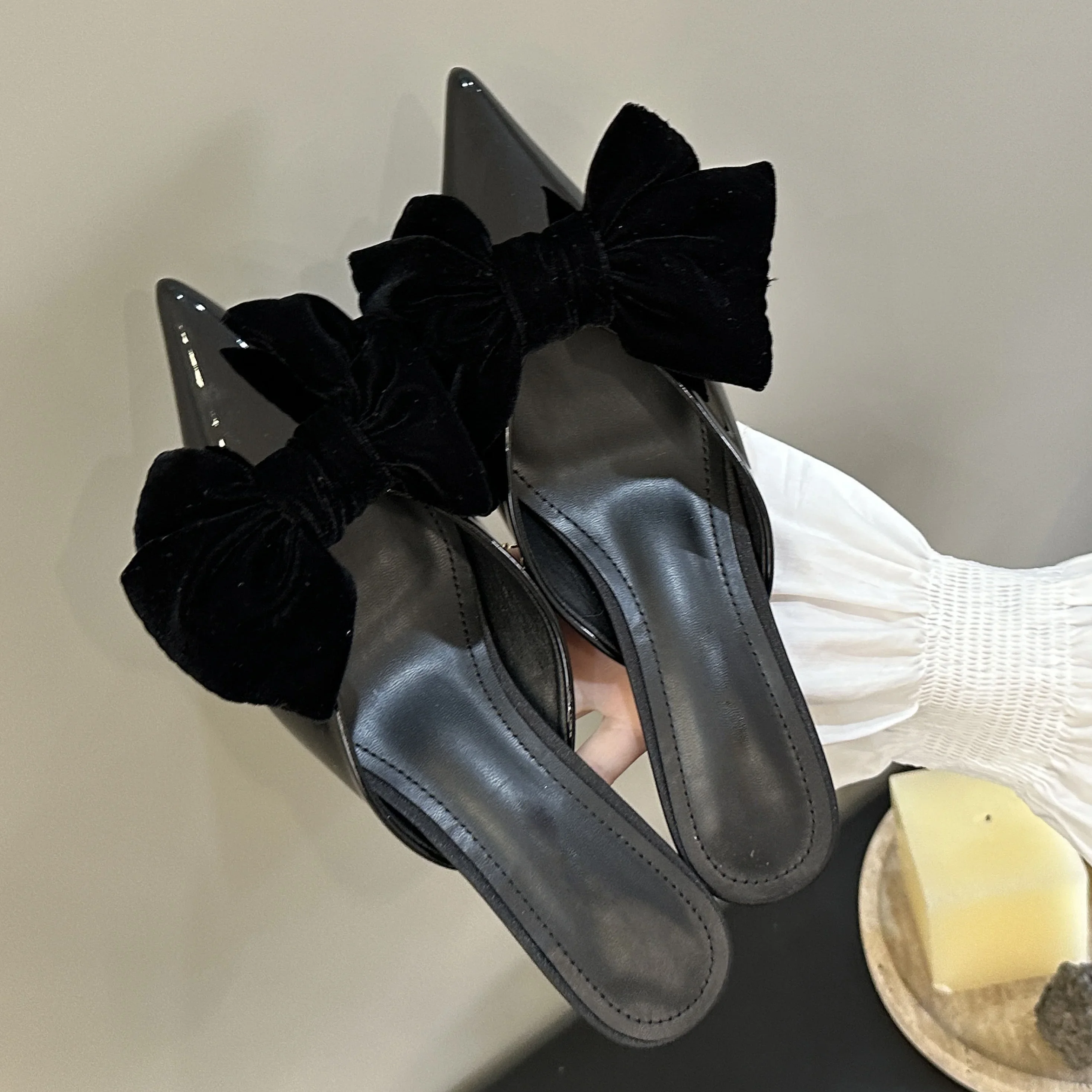 Zapatos de tacón bajo con nudo de mariposa para mujer, elegantes, de punta puntiaguda, de moda.