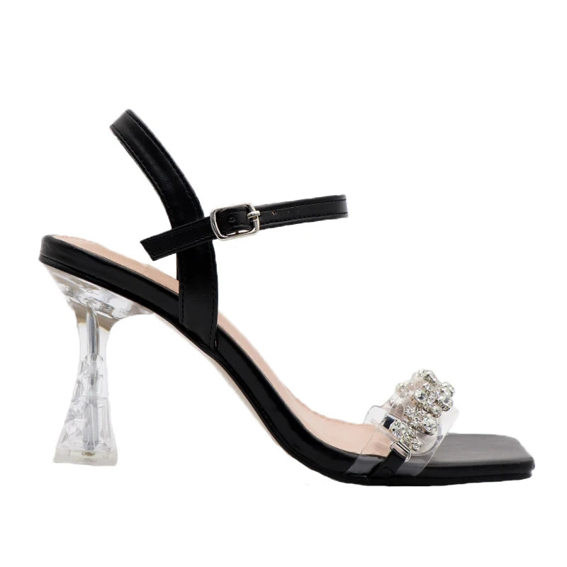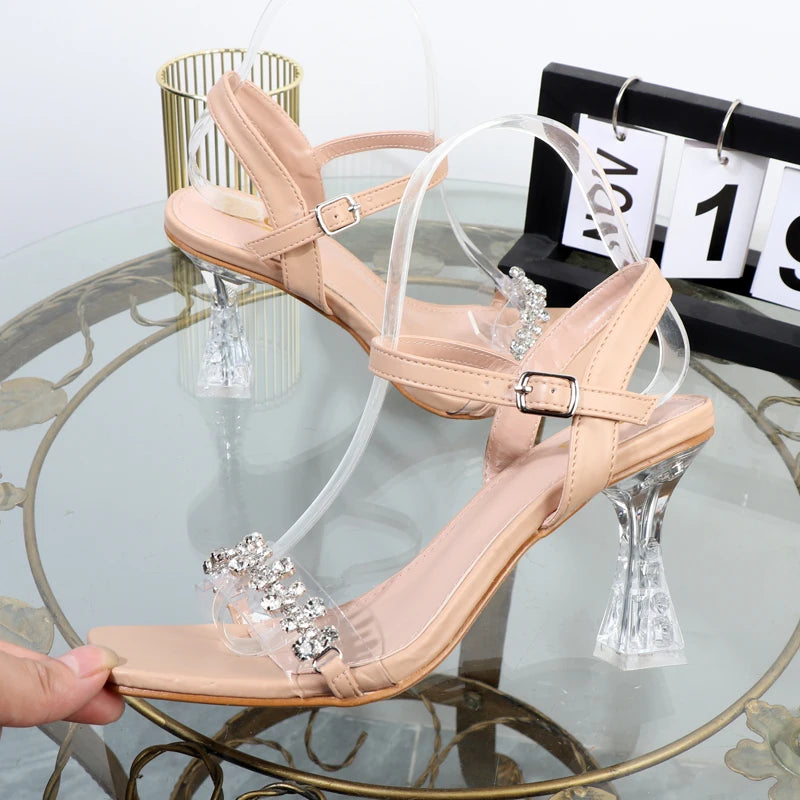 Zapatos de tacón elegantes para mujer, sandalias de tacón alto de otoño, cinturón transparente con diamantes de imitación, zapatos de mujer de moda con cristales de 42 yardas