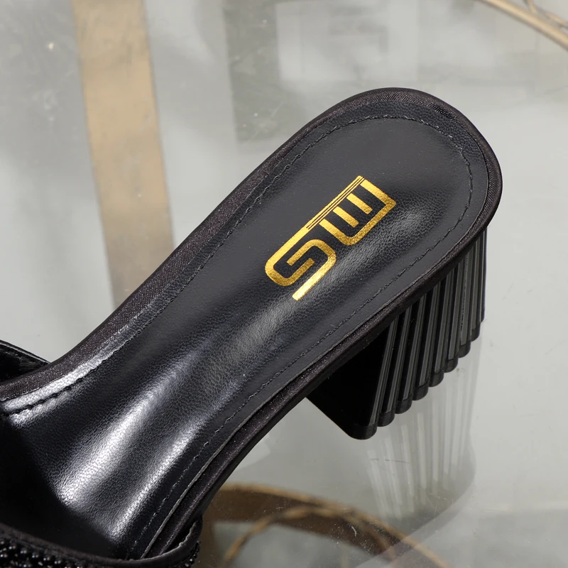Zapatillas de verano nuevas, gruesas y lujosas con cabeza cuadrada y tacón grueso de 6 cm para mujer.