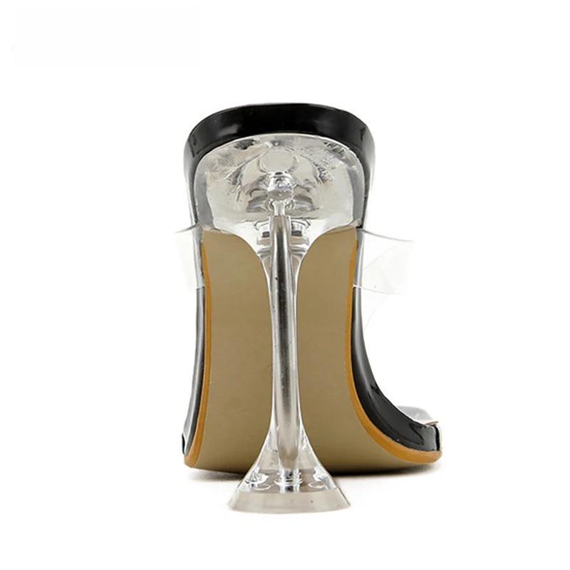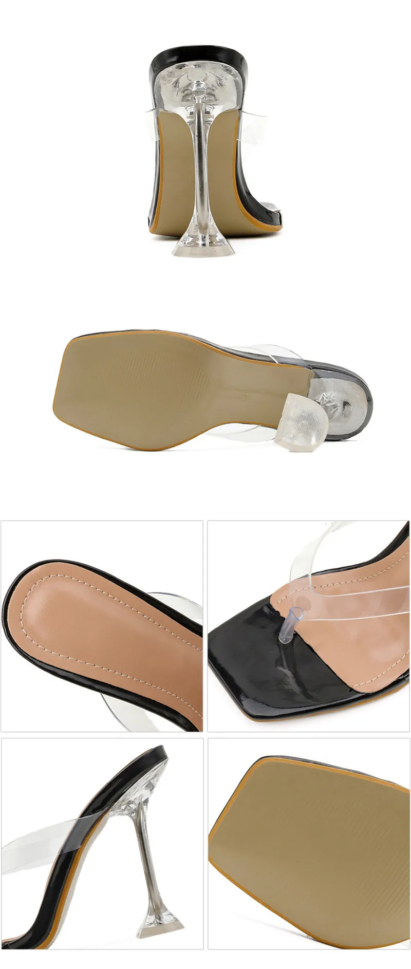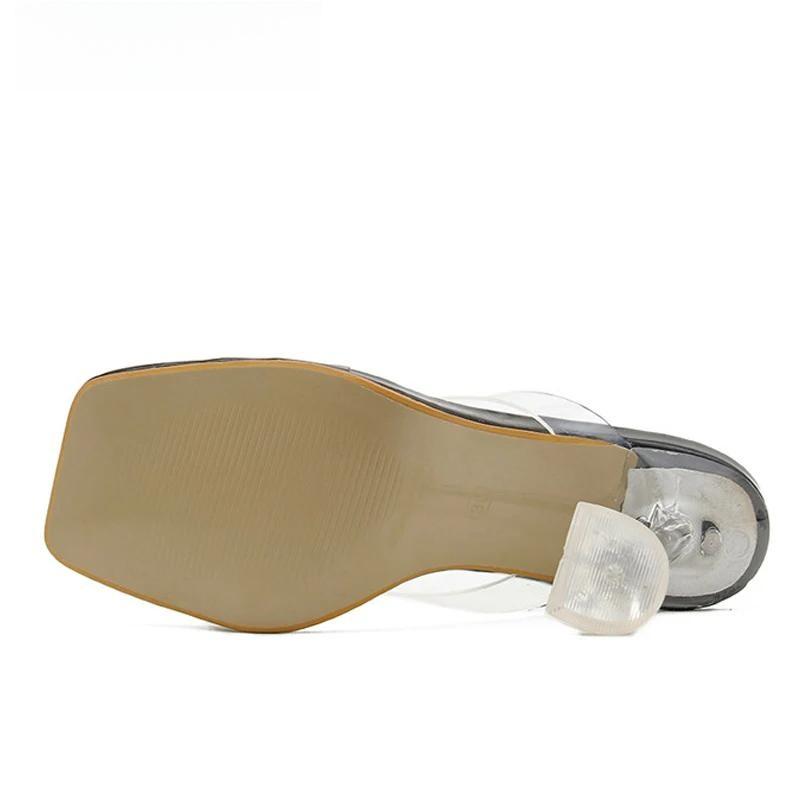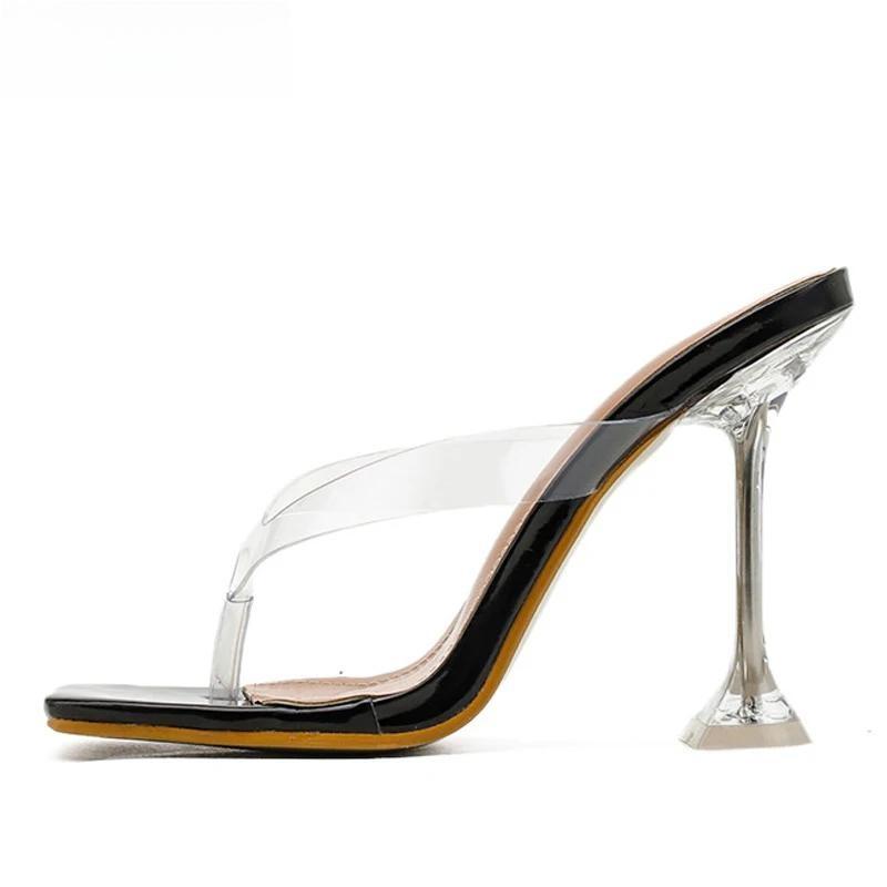 Sandalias de verano con punta cuadrada y tacón de cristal para mujer, chanclas, estilo extraño