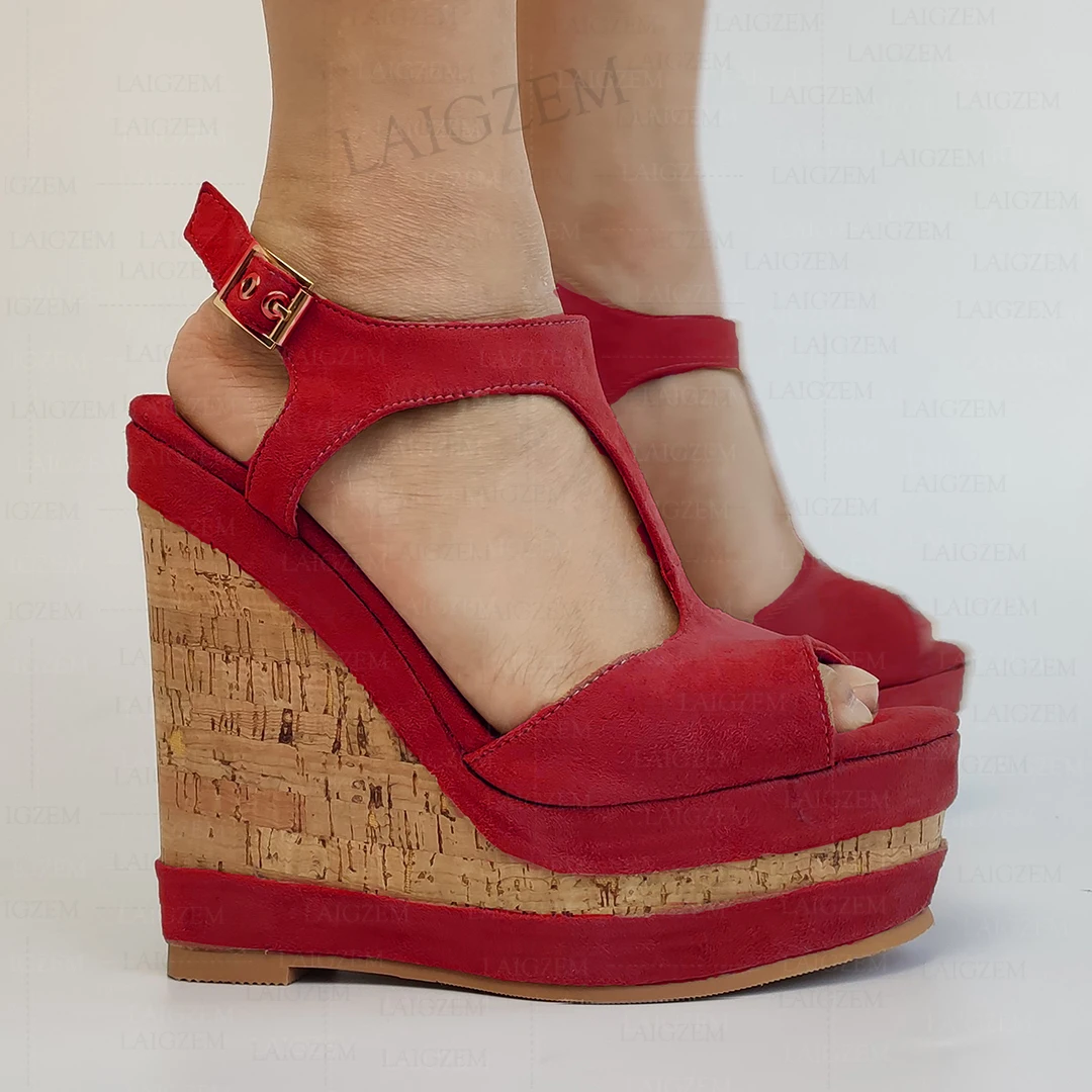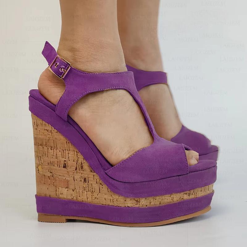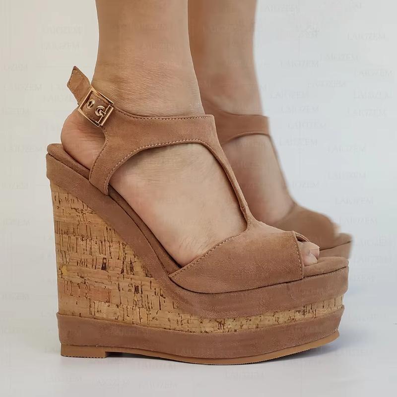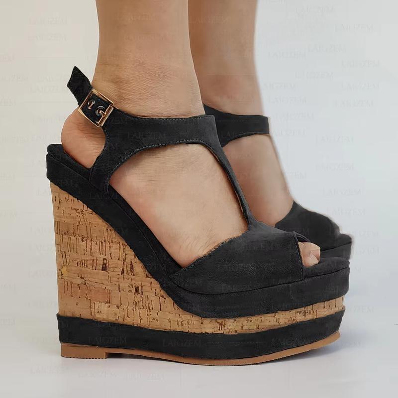 Sandalias de mujer de ante sintético con plataforma y punta abierta, cuñas, tiras en el tobillo, zapatos con aumento de altura, talla grande 41, 44, 50 y 52
