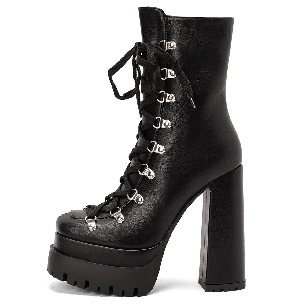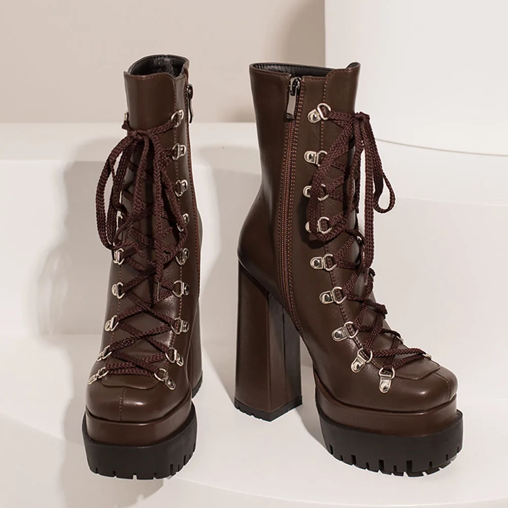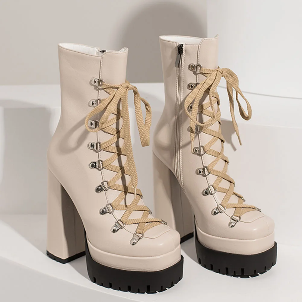 Botas de plataforma para mujer con cordones y tacón grueso súper alto.