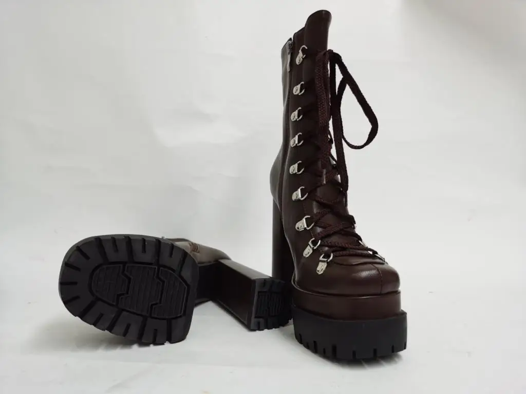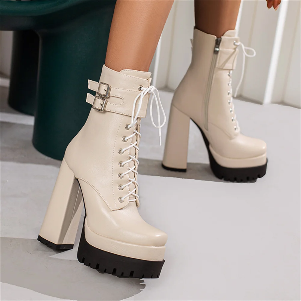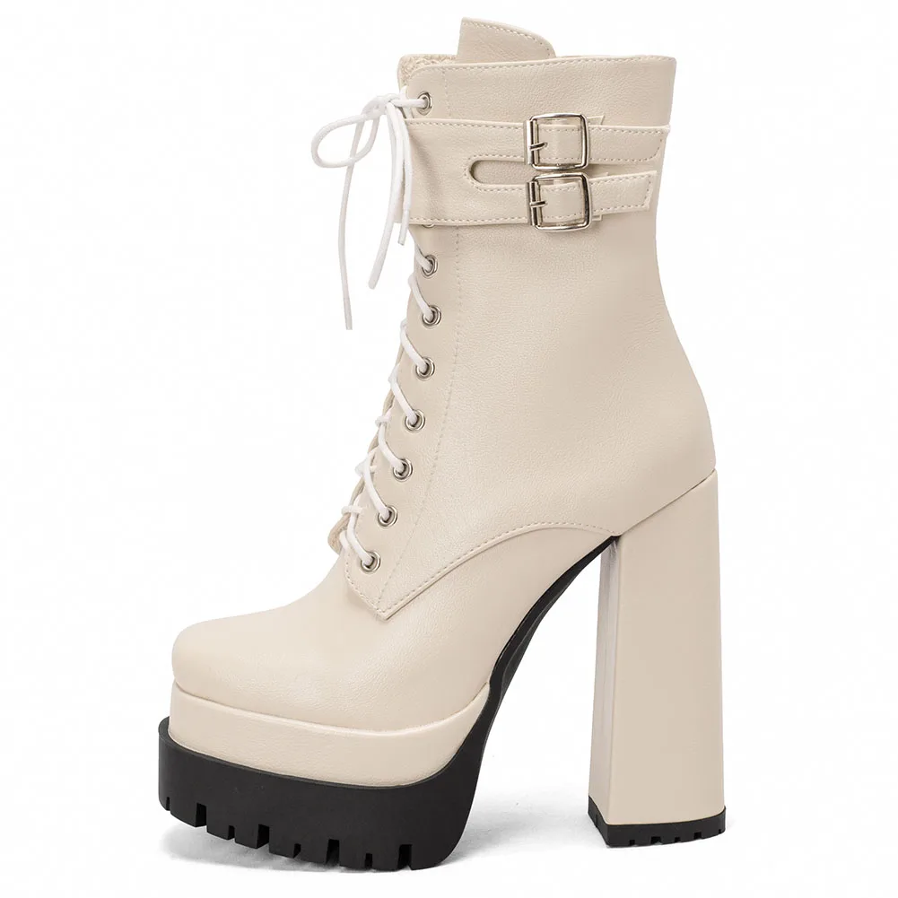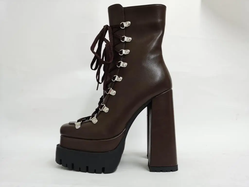Botas de plataforma para mujer con cordones y tacón grueso súper alto.