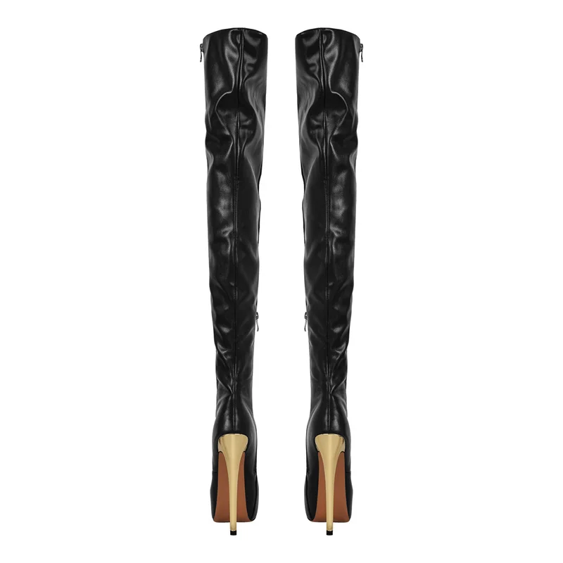 Botas de plataforma por encima de la rodilla para mujer, tacón alto fino, cremallera, moda, sexy, negras, botas de invierno para mujer