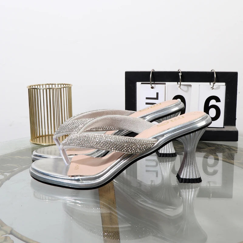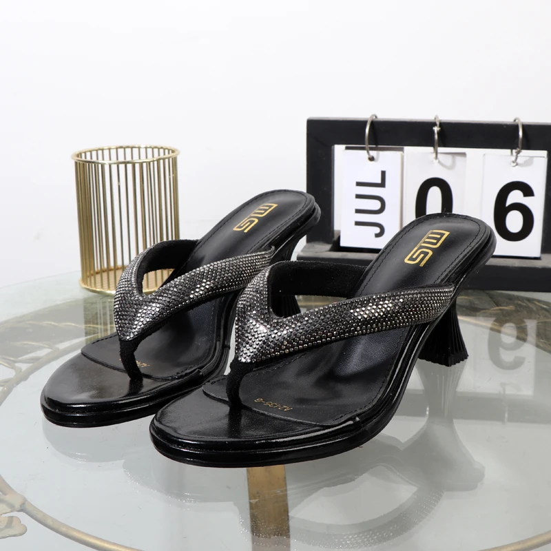 Sandalias de verano con tacones altos y clip en los dedos, de lujo, con diamantes de imitación, para mujer.