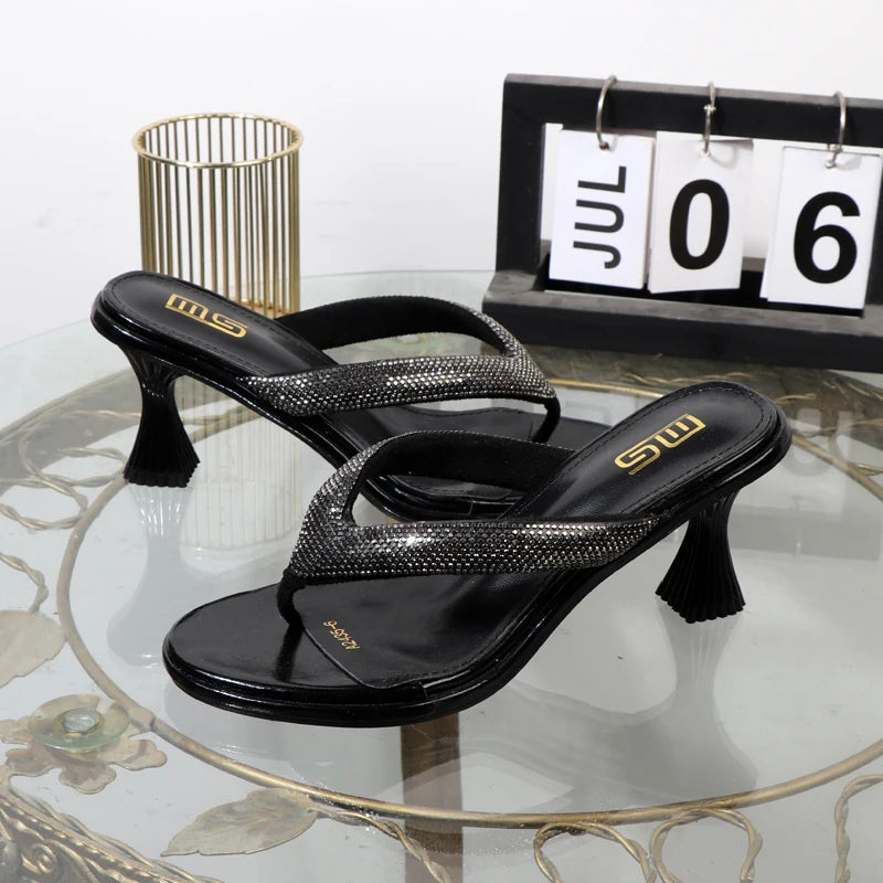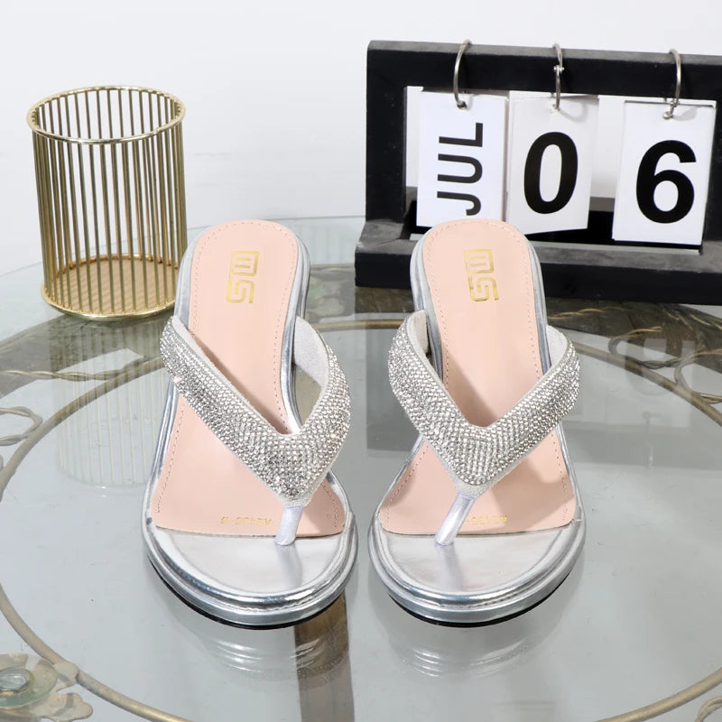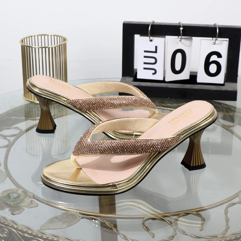 Chanclas doradas de verano nuevas con clip en los dedos, tacones altos lujosos