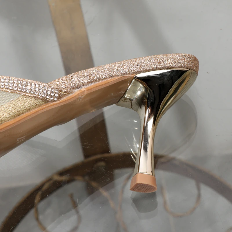 Sandalias de tacón alto con lazo de punta poco profunda de verano, sandalias de gasa con diamantes de imitación, zapatos de banquete de lujo