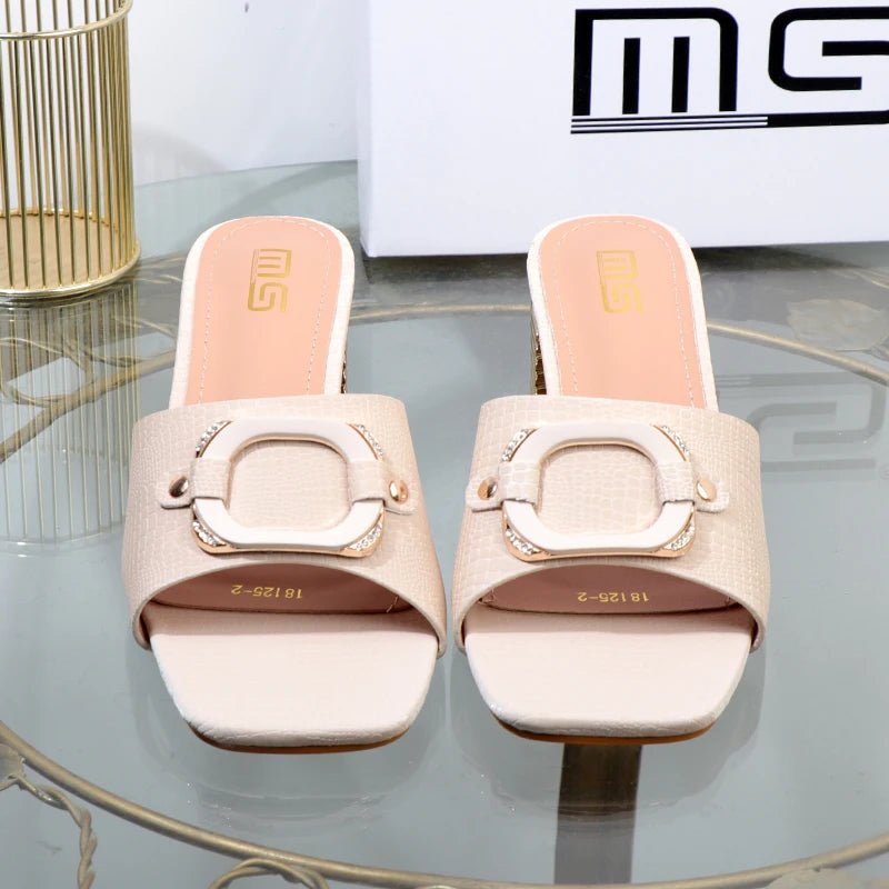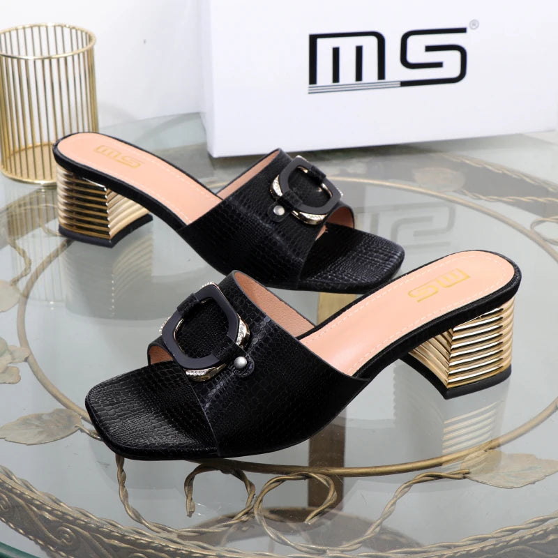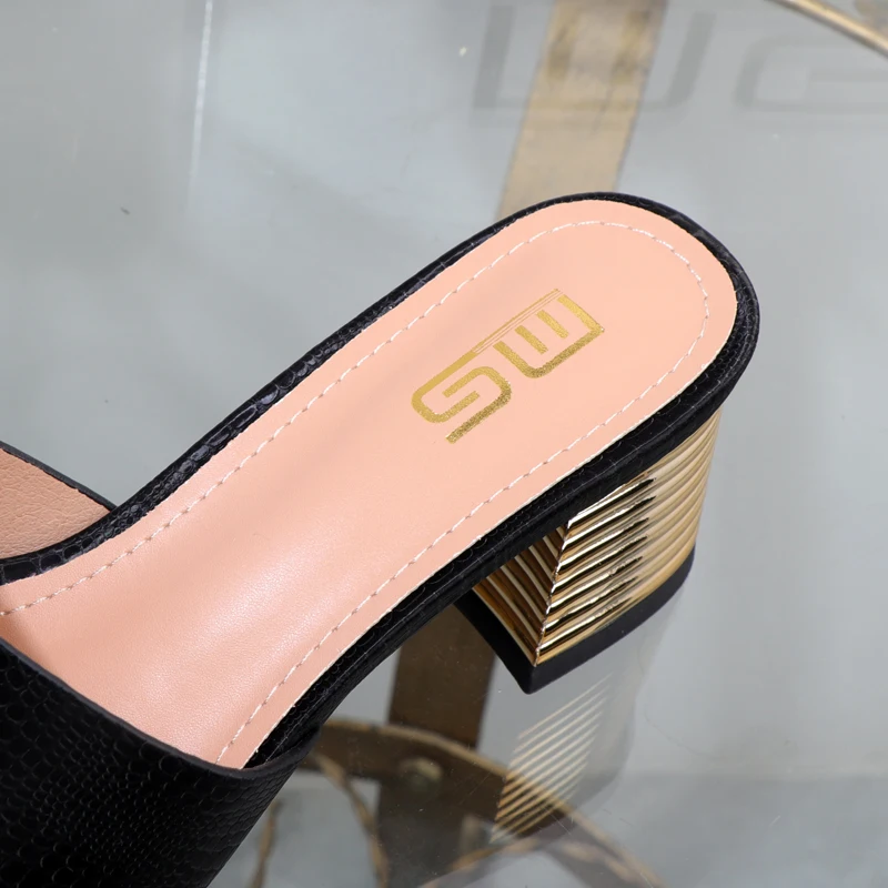 Zapatillas de mujer de tacón alto Verano de nuevas sandalias de tacón grueso con hebilla cuadrada de talla grande
