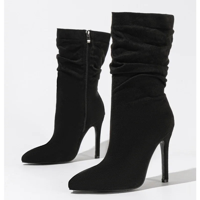 Botines plisados de alta calidad para mujer, tacones de aguja, botines cortos modernos, para fiestas, bodas, primavera y otoño.