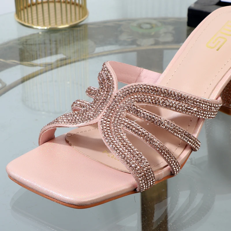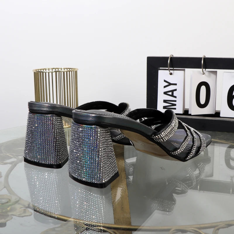 Zapatillas de lujo de verano con tacones altos gruesos ahuecados, zapatos de moda de talla grande, sandalias, zapatos para la fiesta.