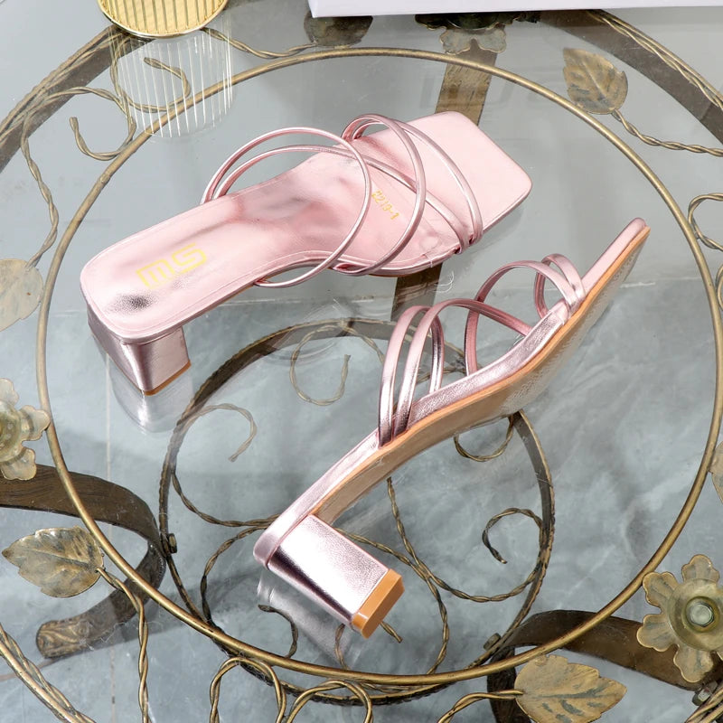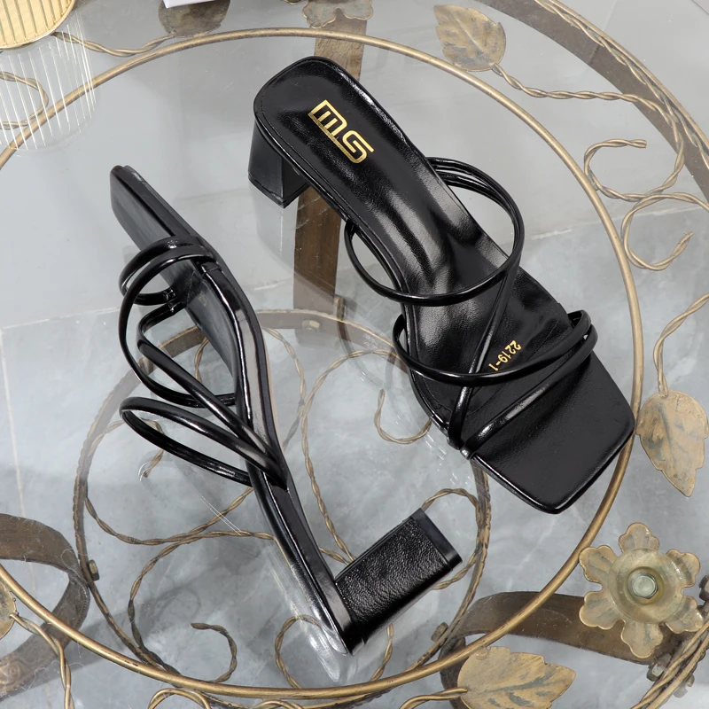 Sandalias de verano de tacón grueso y sencillo con suela suave y versátiles, con tacón cuadrado de 5 cm.