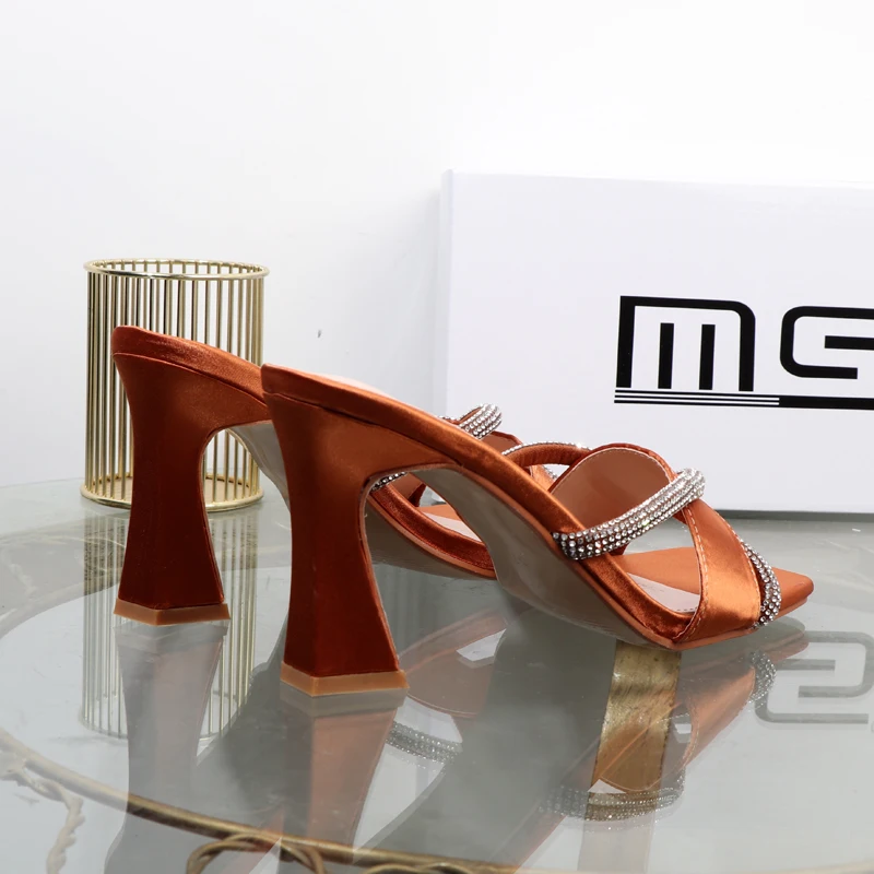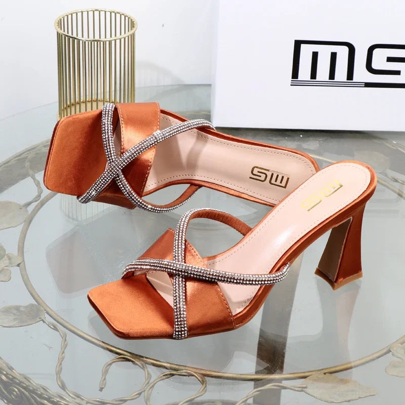 Nuevas zapatillas de talla grande para mujer, tacones altos con diamantes de imitación, sandalias para fiesta al aire libre para mujer