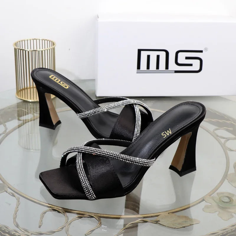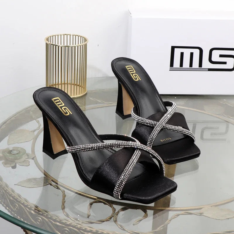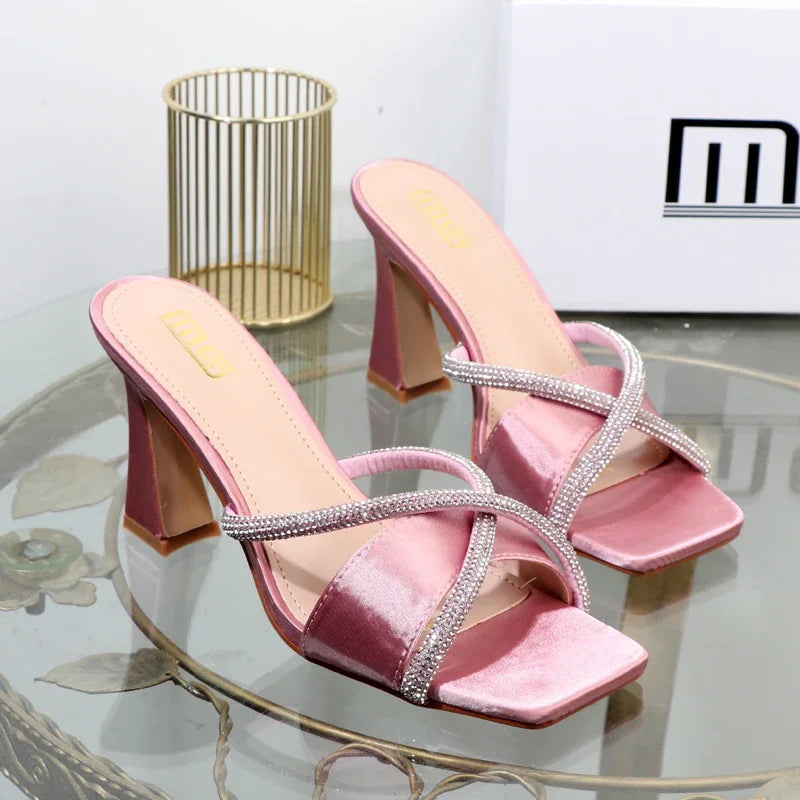 Zapatos de diseñador de lujo, tacones nuevos, zapatillas de talla grande para mujer, tacones altos con diamantes de imitación.