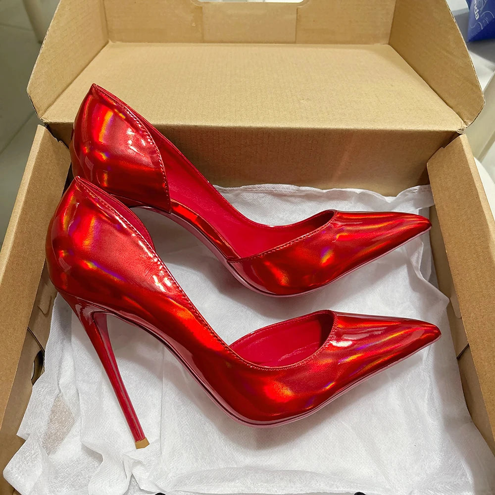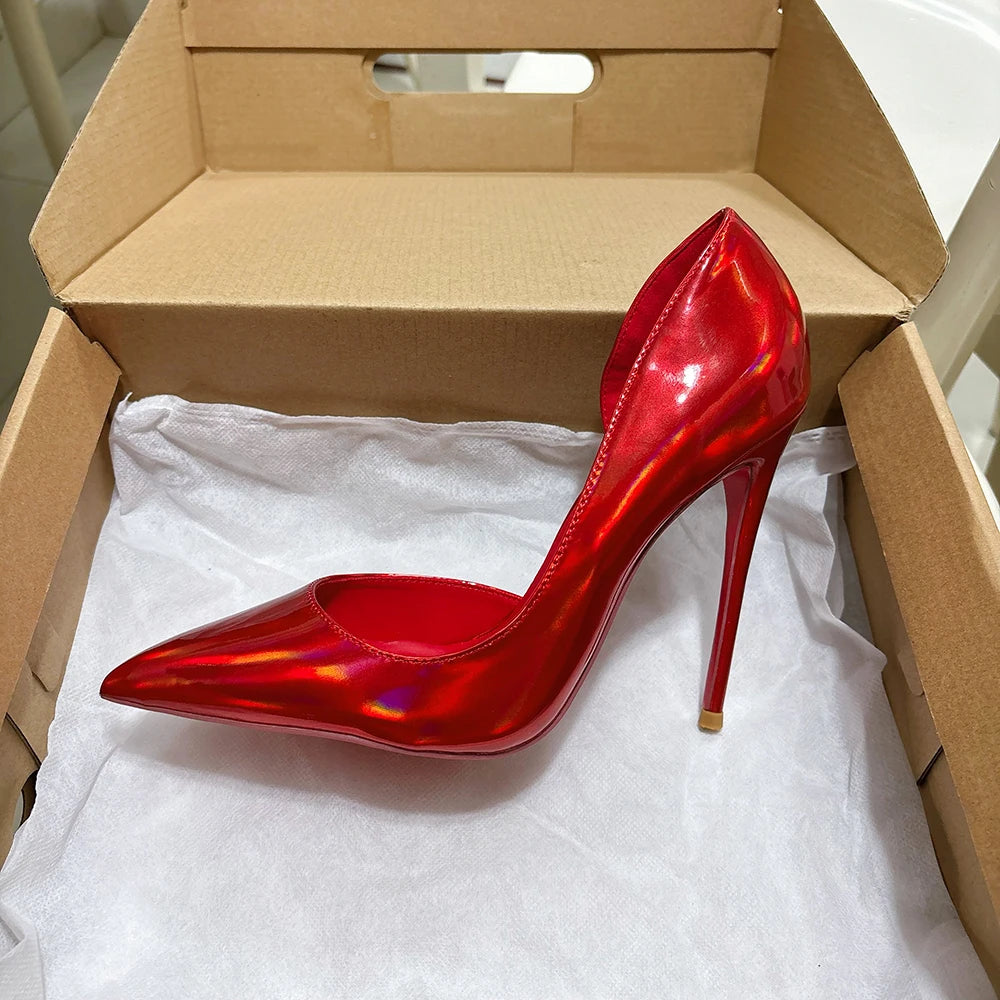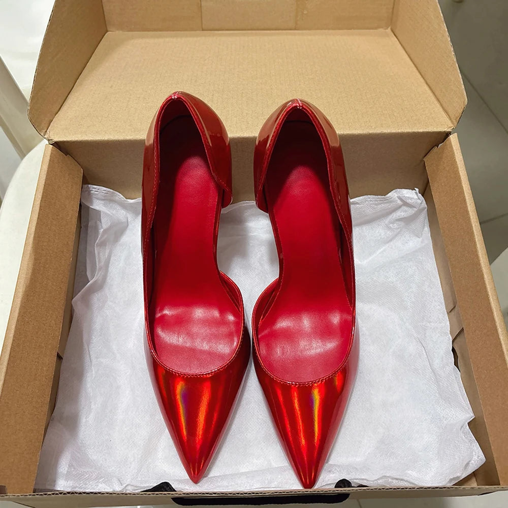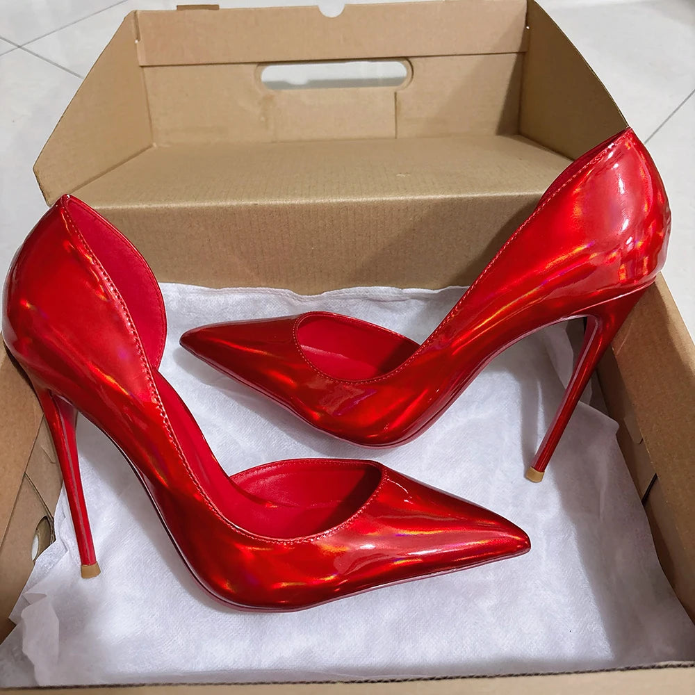 Zapatos de tacón alto con corte en V lateral, sexys y elegantes, de 12 cm, totalmente rojos, para mujer