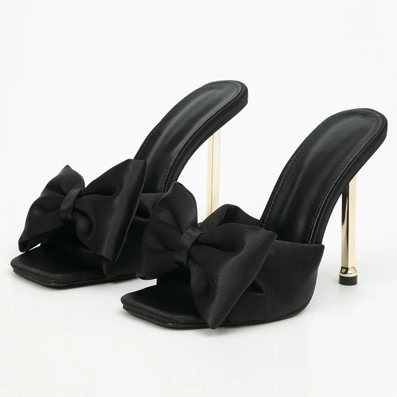 Sandalias de tacón alto con nudo de mariposa de seda para mujer, sandalias con punta cuadrada, zapatos de fiesta