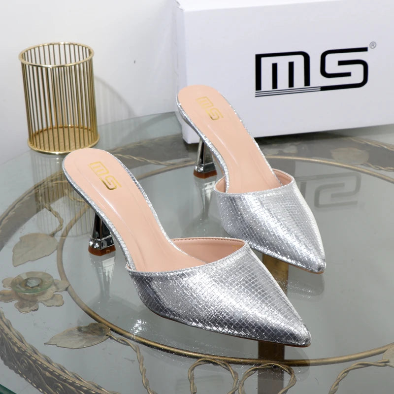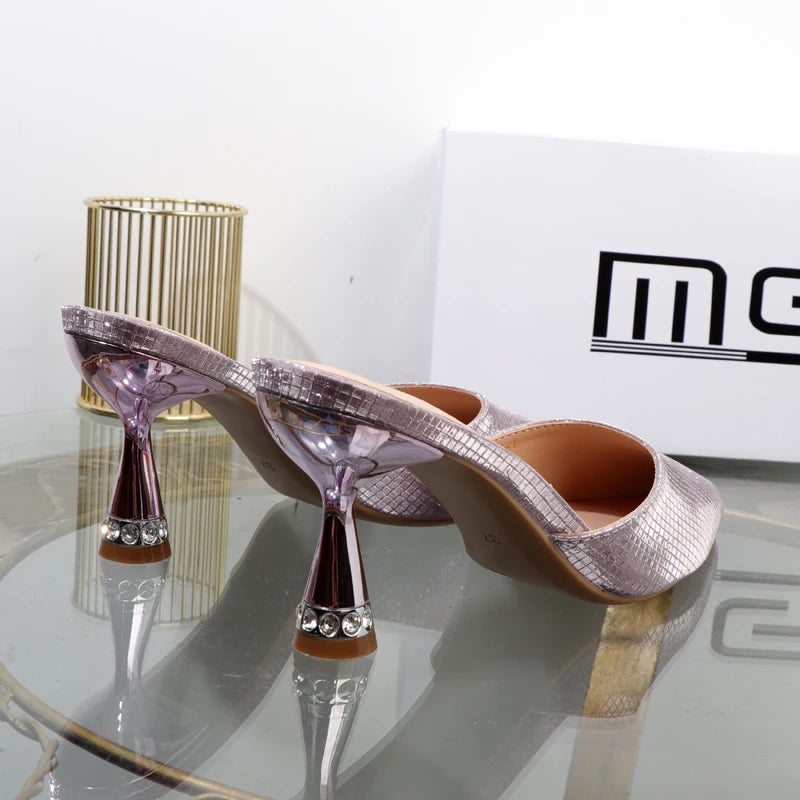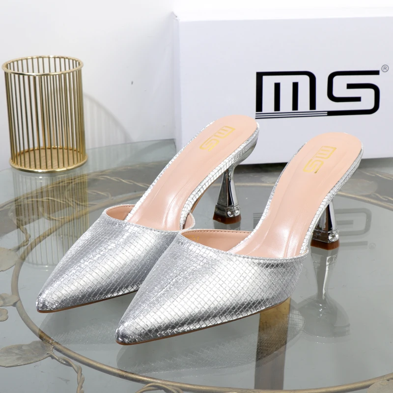 Nuevas zapatillas de exterior con tacones puntiagudos y bajos en oro rosa, tacones finos de media caña con tacón alto para mujer, sandalias elegantes