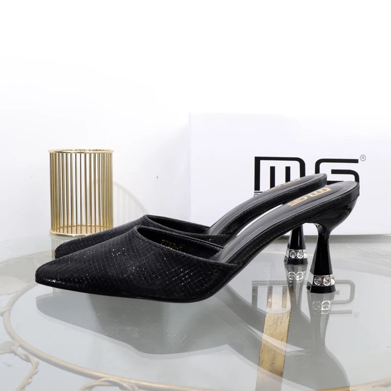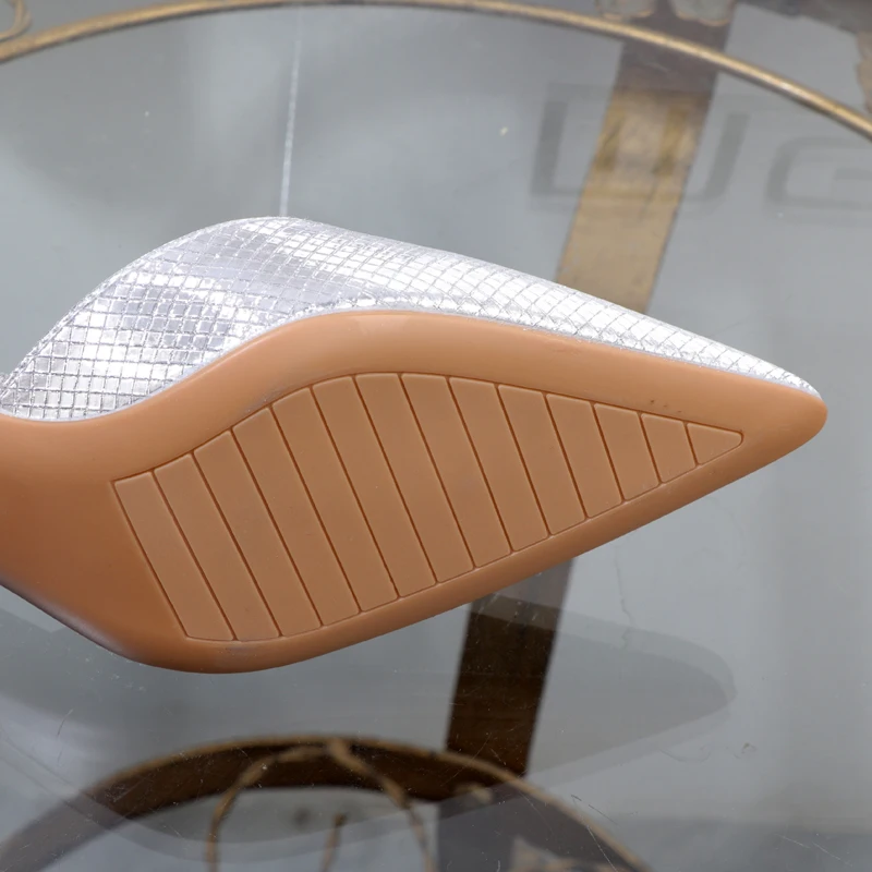 Nuevas zapatillas de exterior con tacones puntiagudos y poco profundos en oro rosa, tacones finos de media caña con tacones altos para mujer