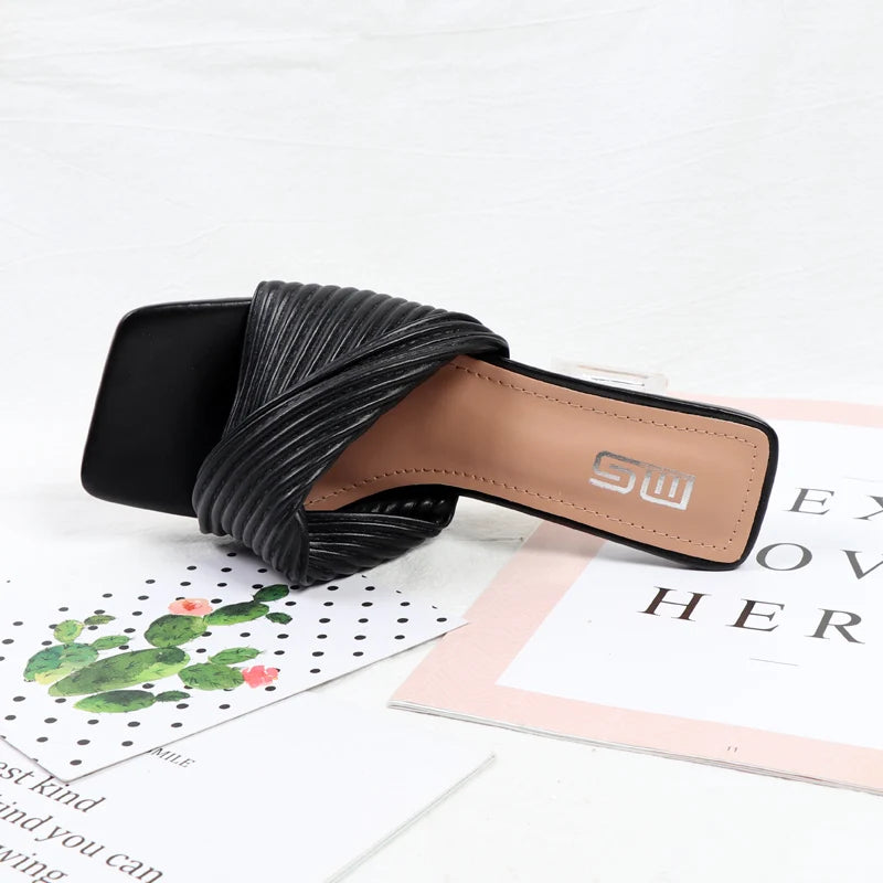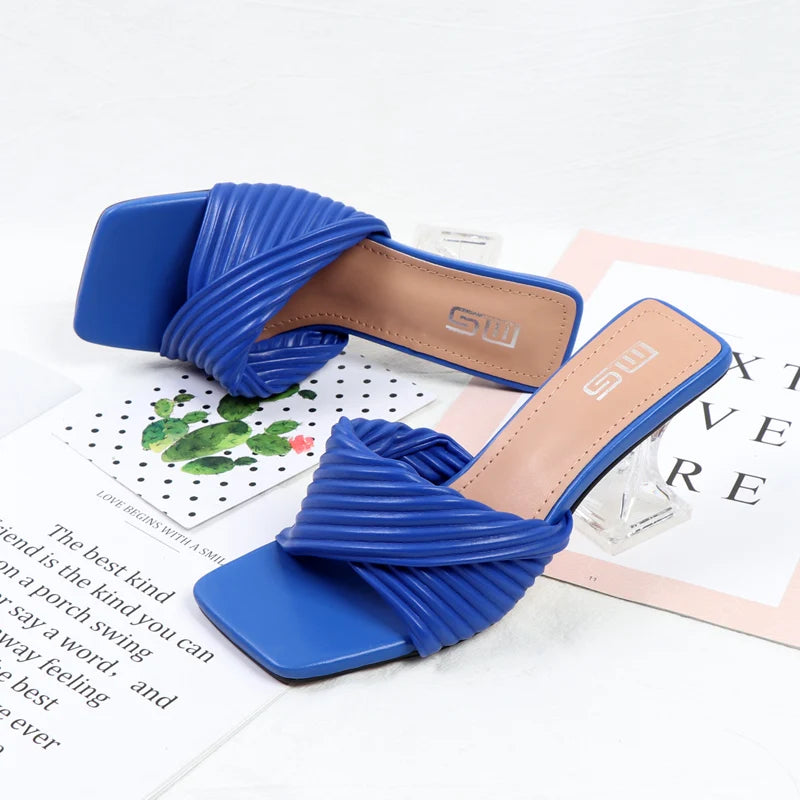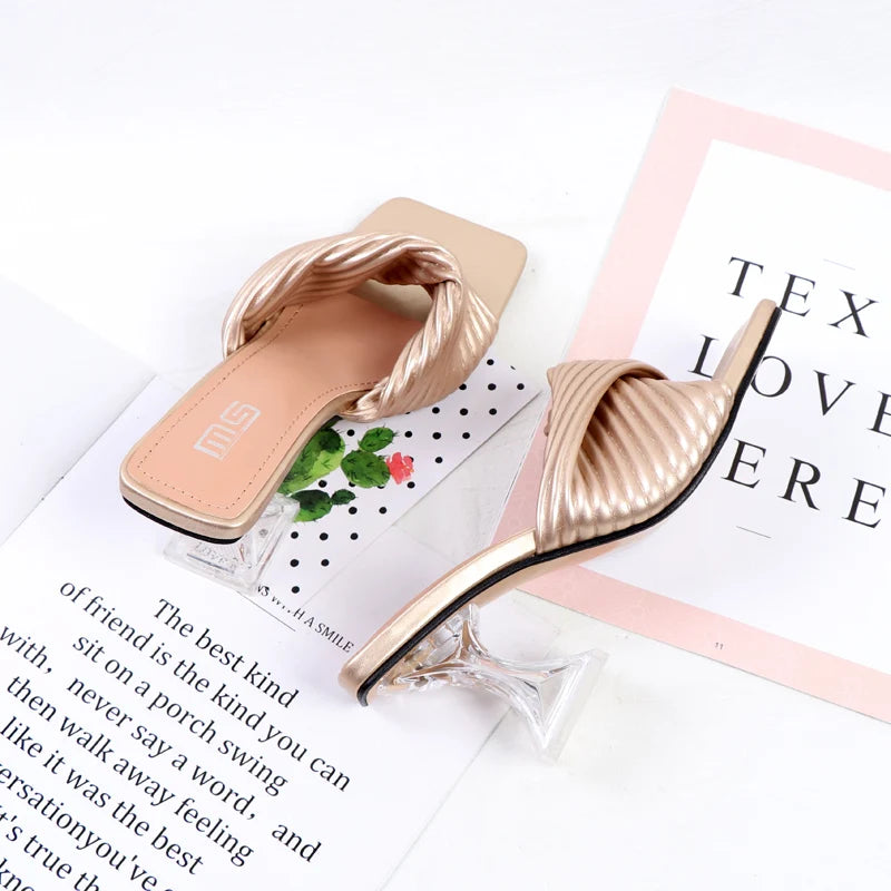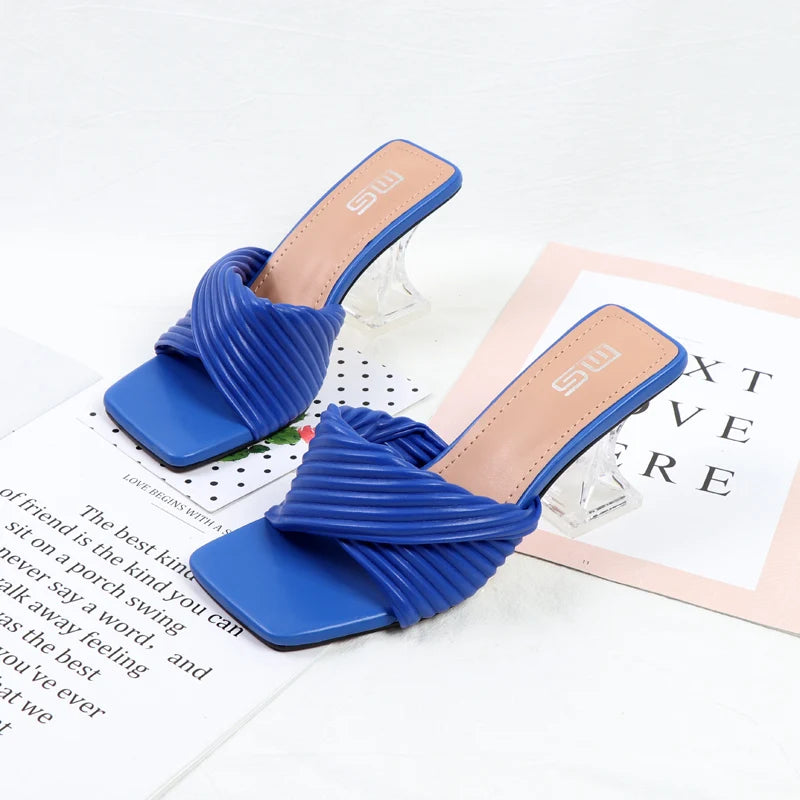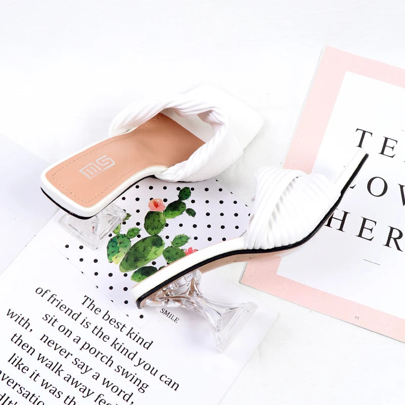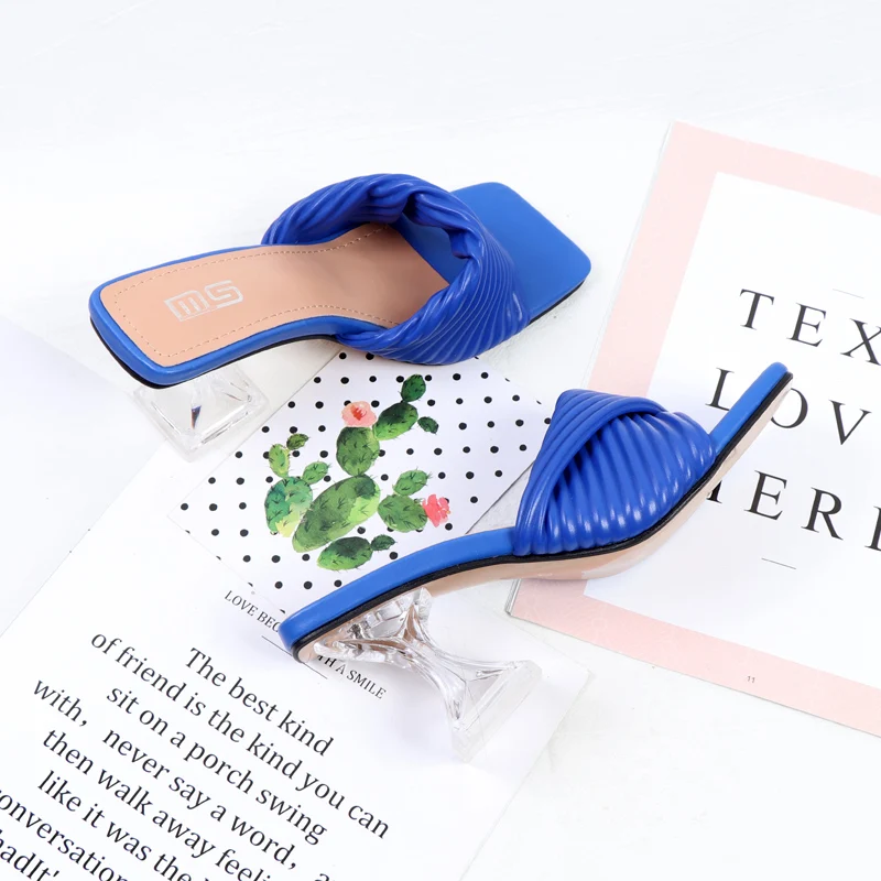 Nuevas sandalias de tacón alto de piel suave para exteriores con cabeza cuadrada y tacón de cristal transparente para mujer, zapatos de moda para mujer
