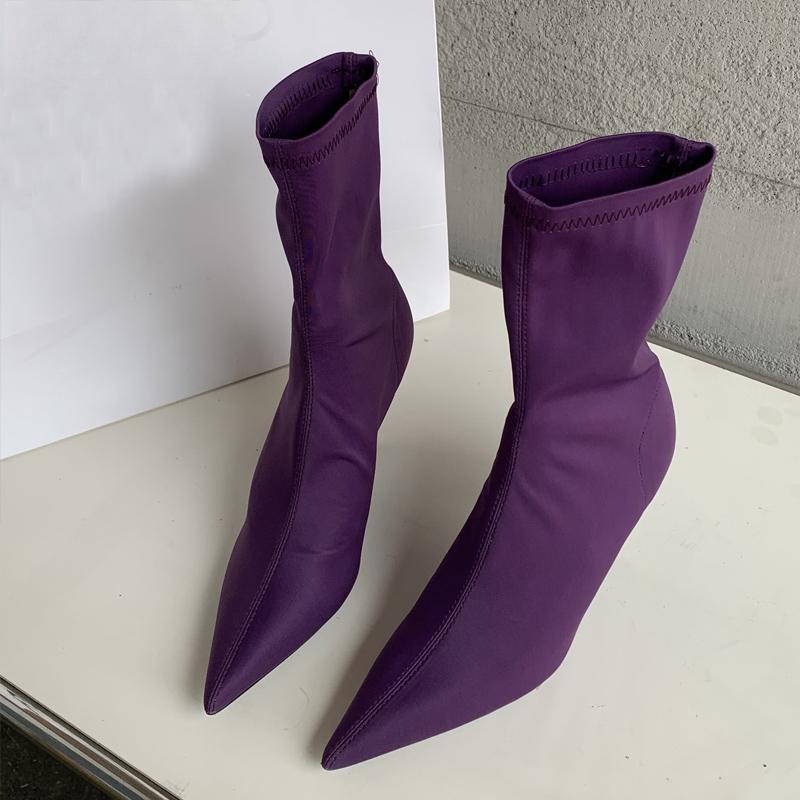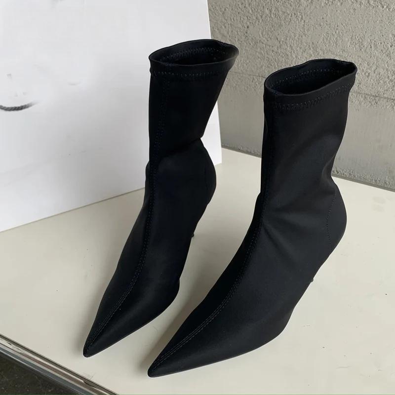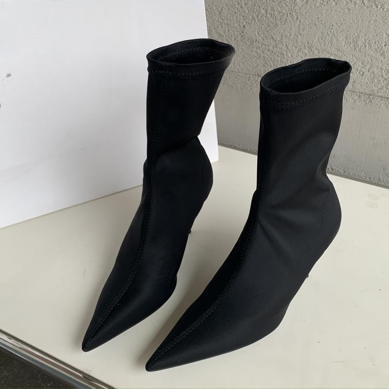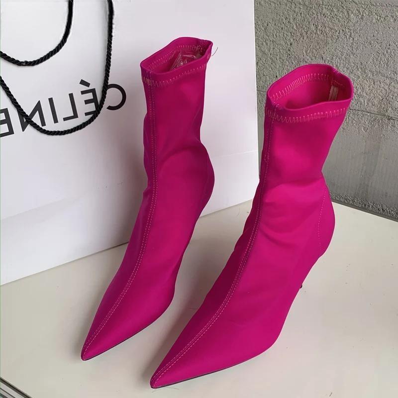 Botines de tela elástica para mujer, botas sexys de punta puntiaguda y tacones altos, calcetines de moda para mujer, zapatos de tacón