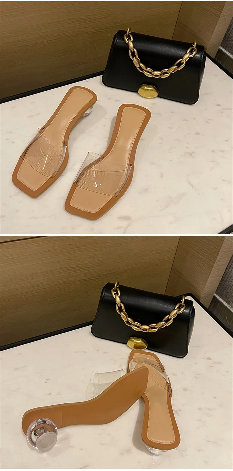 Sandalias de tacón redondo con bola de cristal para mujer, chanclas de verano para playa y exteriores con punta abierta