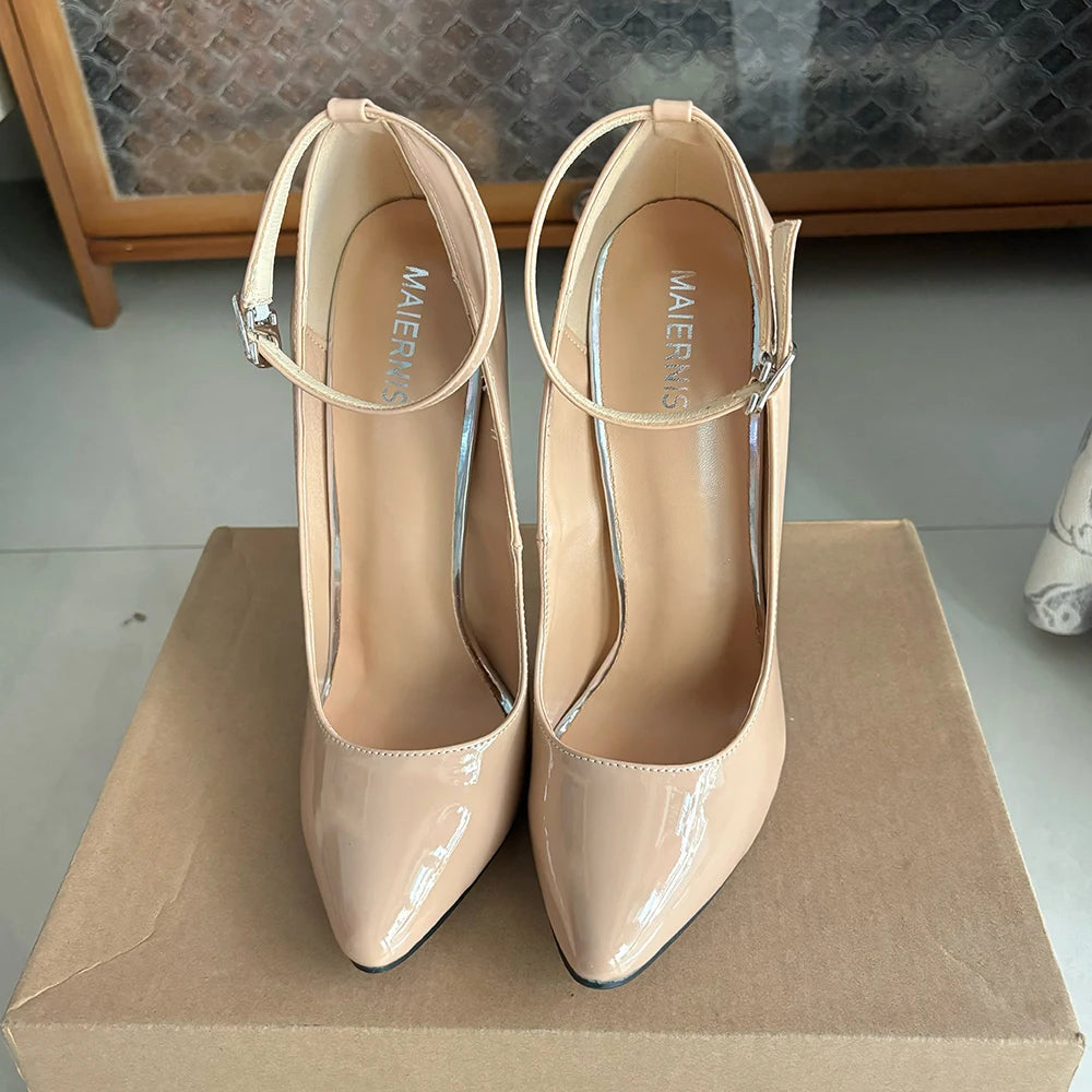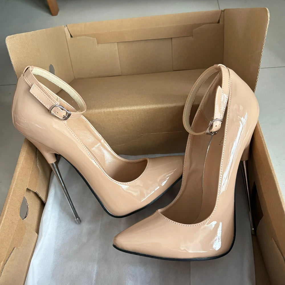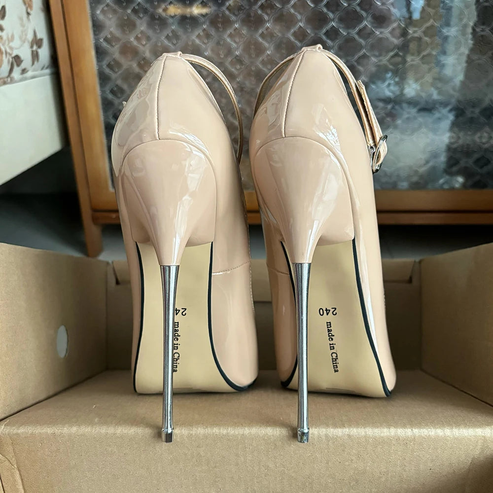 Zapatos de tacón superalto de 16 cm con tiras al tobillo, sexys, color albaricoque, para fiesta, fetiches, unisex, talla 46