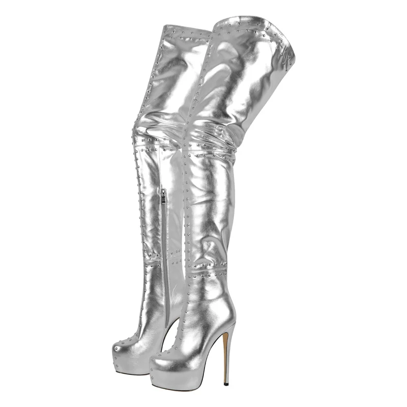 Botas por encima de la rodilla para mujer, con plataforma, tacón alto y fino, con cremallera, a la moda, negras, sexys, para invierno.
