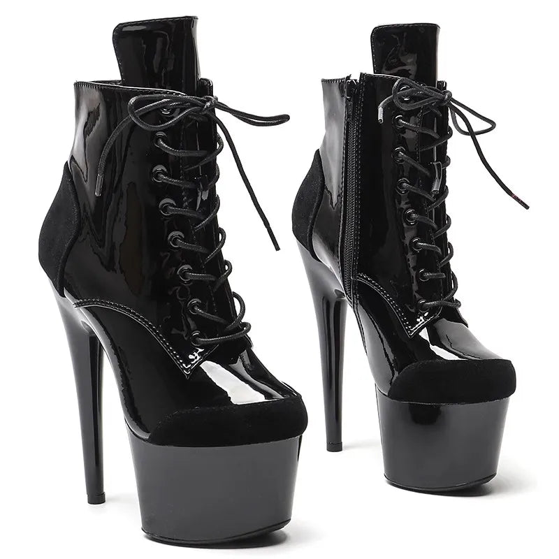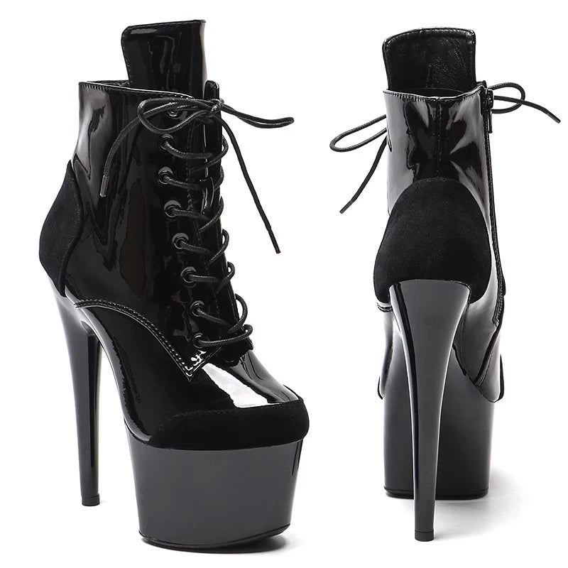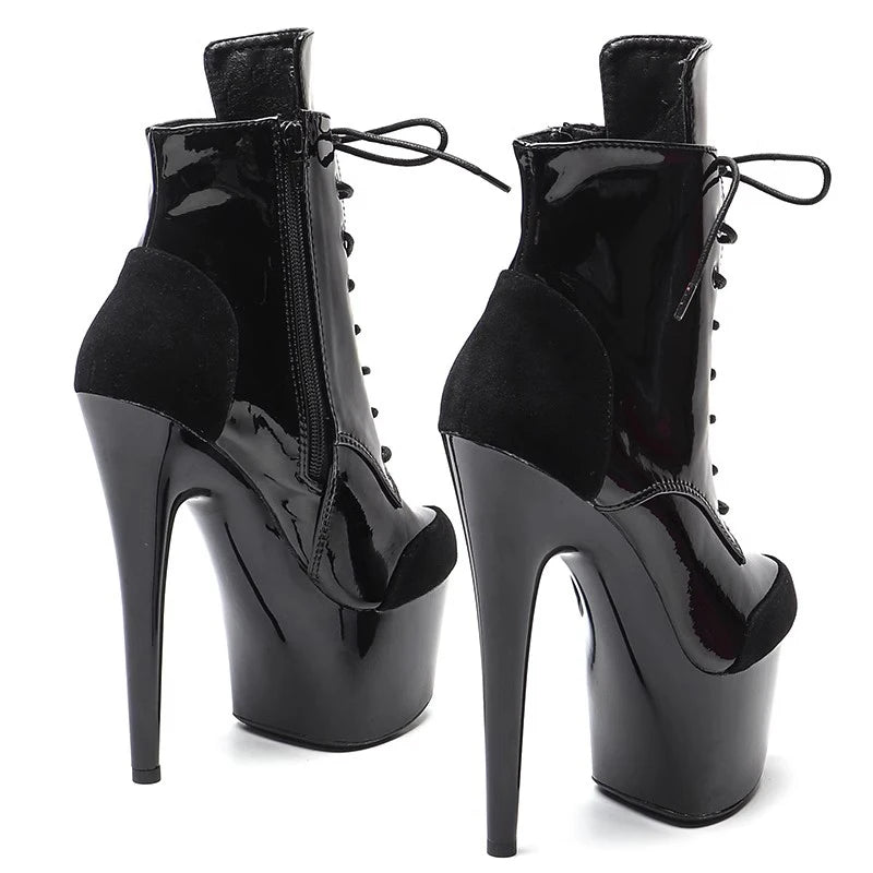 Botas modernas de tacón alto con plataforma para mujer, de charol, de 17 cm/7 pulgadas, para fiesta y baile en barra.
