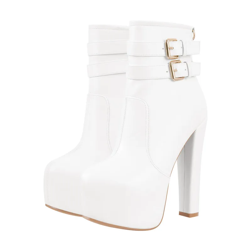 Botines de plataforma con punta redonda, botines bajos, bloque, tacón alto grueso, botas negras hechas a mano