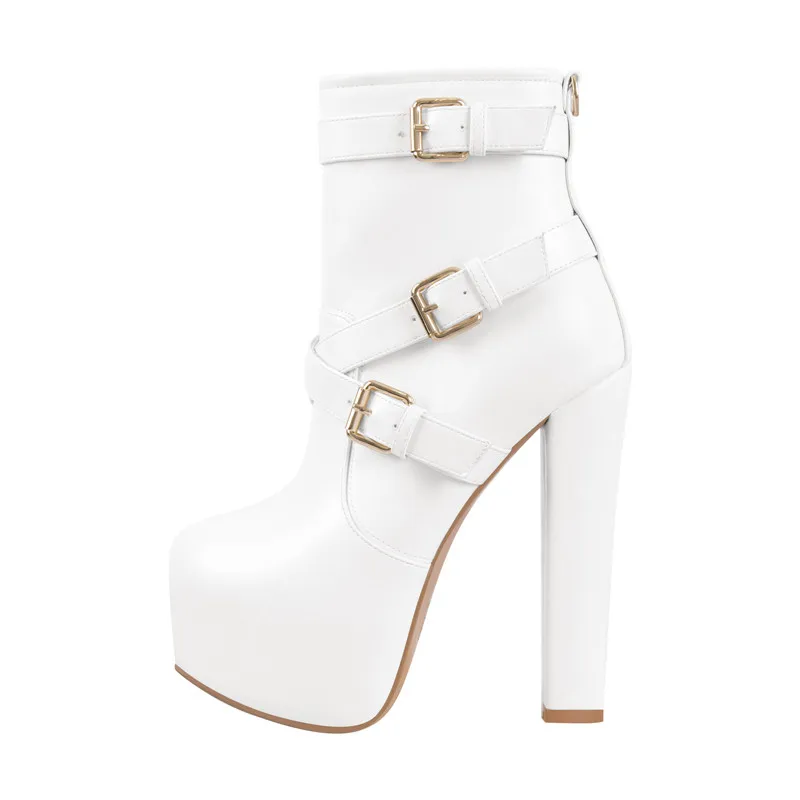Botines de plataforma para mujer, botines cortos con punta redonda