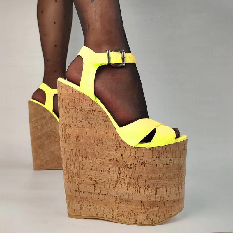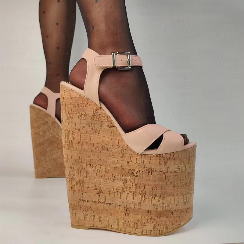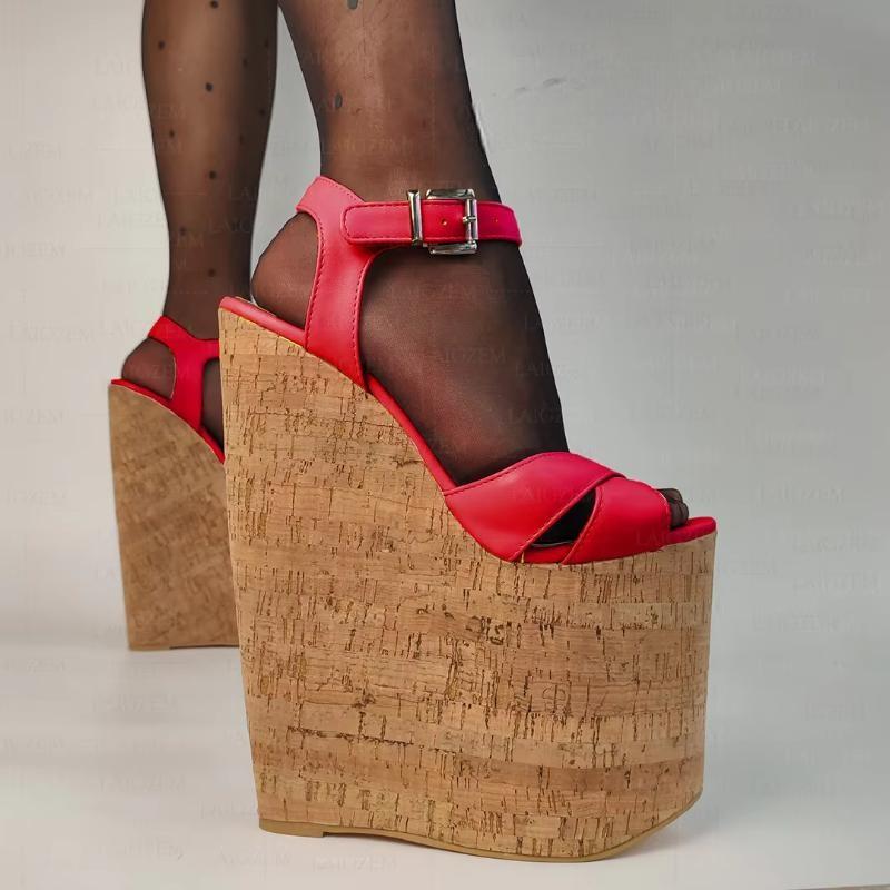 Sandalias de mujer con plataforma y cuña de piel sintética, tacones altos de 22 cm, para fiesta y club, tallas grandes 38, 41, 43, 46 y 48