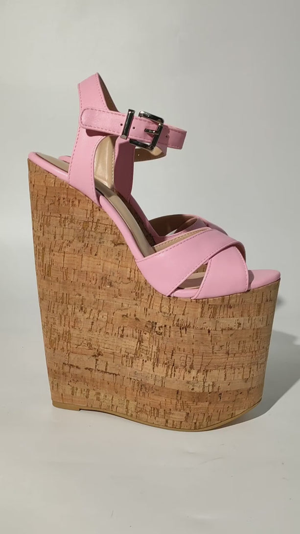 Zapatos de tacón alto de 22 cm con plataforma y cuña de piel sintética