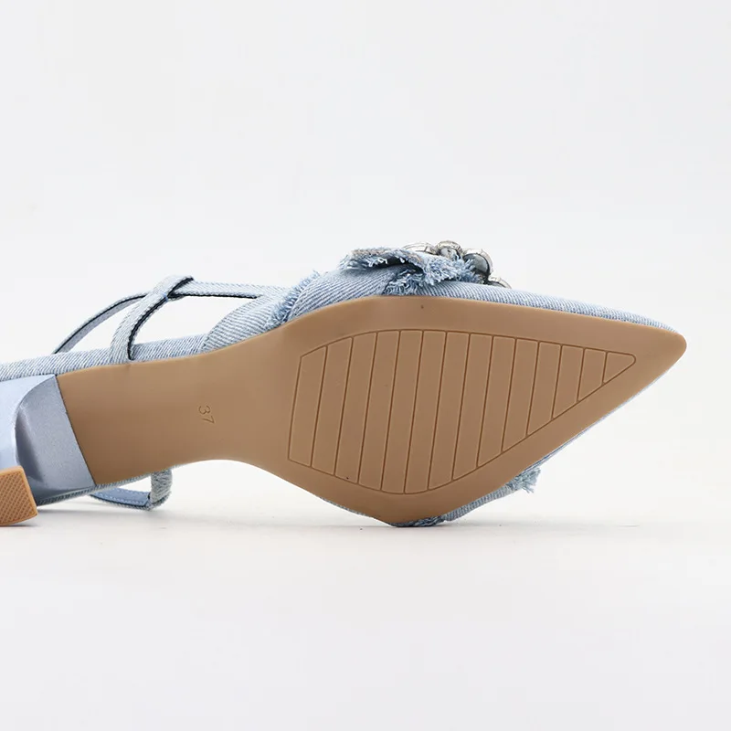 Sandalias de tacón alto puntiagudas de otoño Baotou con hebilla cuadrada de diamantes de imitación, sandalias de mezclilla para mujer