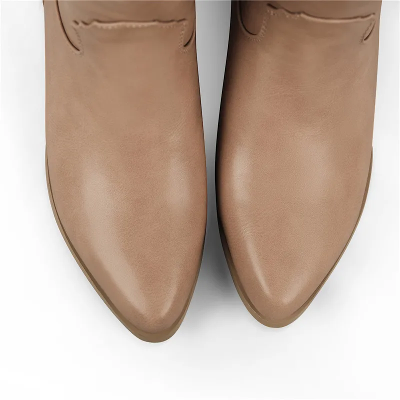 Botas altas hasta la rodilla con punta dorada para mujer, botas vaqueras occidentales, pantorrilla ancha, tacón de bloque bordado, sin cordones, vaquera para mujer