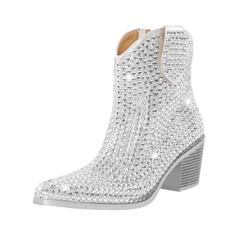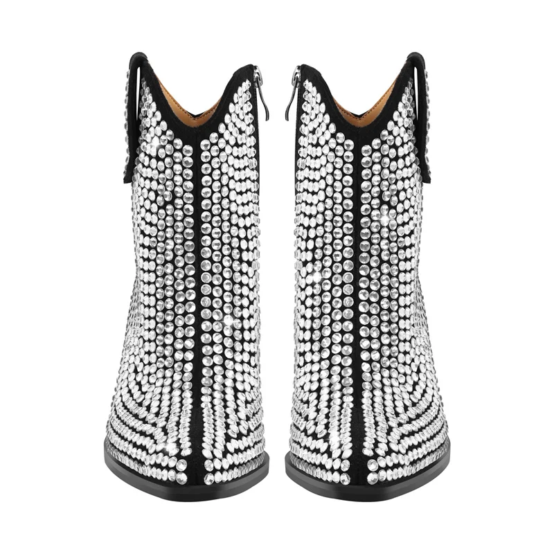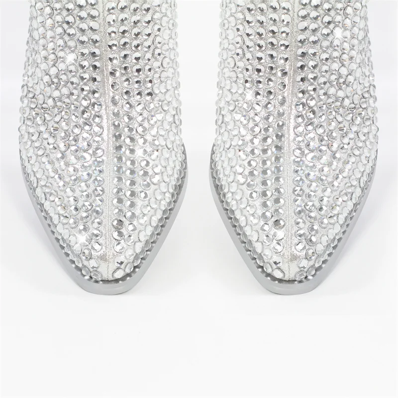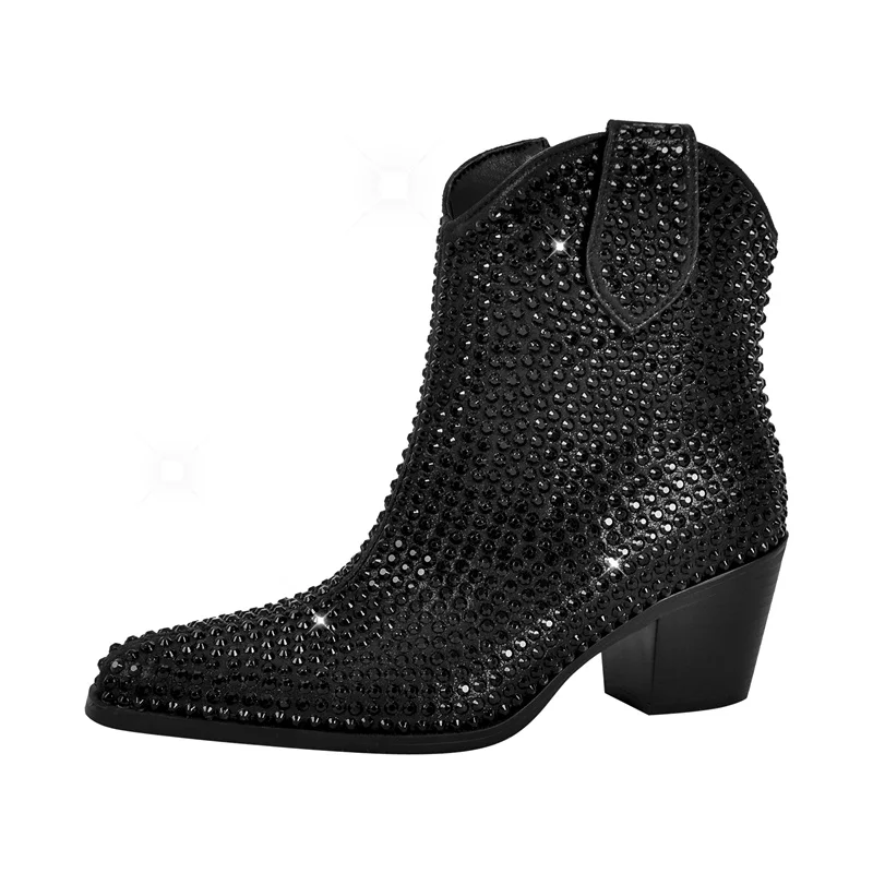 Botines de punta puntiaguda con diamantes de imitación, brillantes, súper bonitos, preciosos, con diamantes artificiales, botas vaqueras Westen