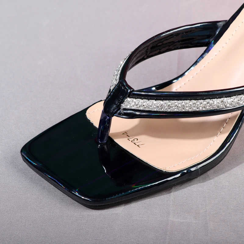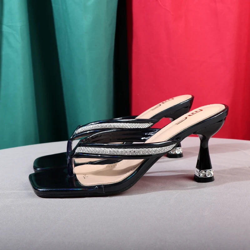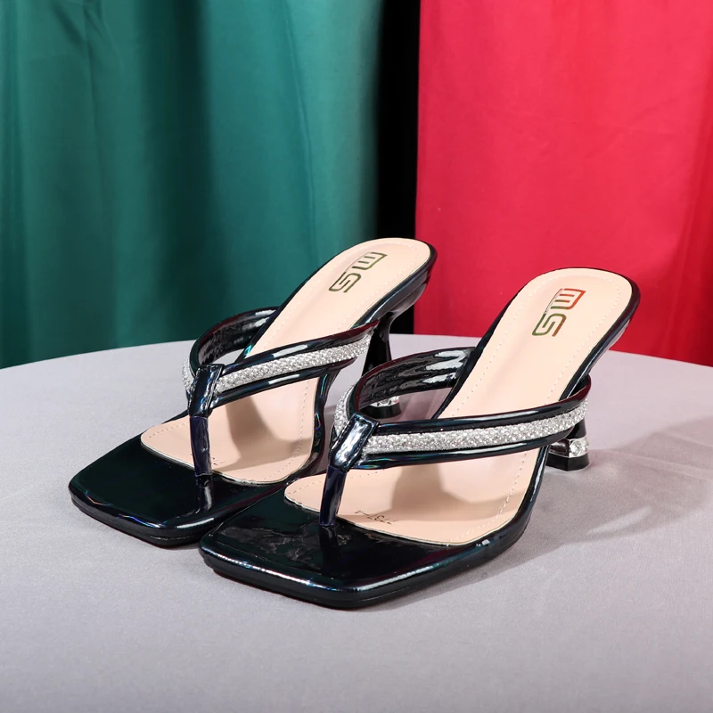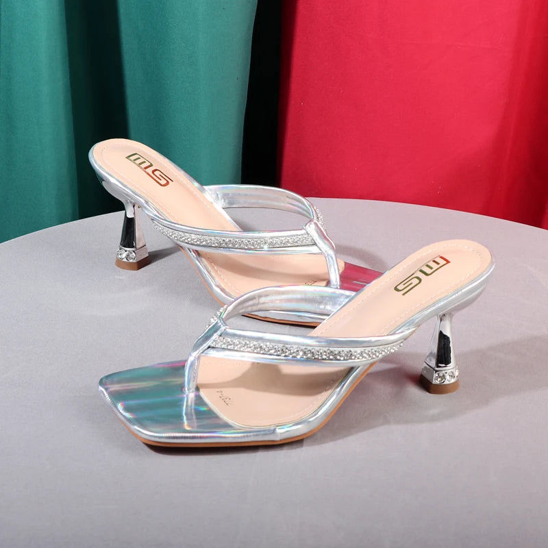 Chanclas de verano con diamantes de imitación, nuevas, de tacón alto, con puntera de aguja y clip para mujer